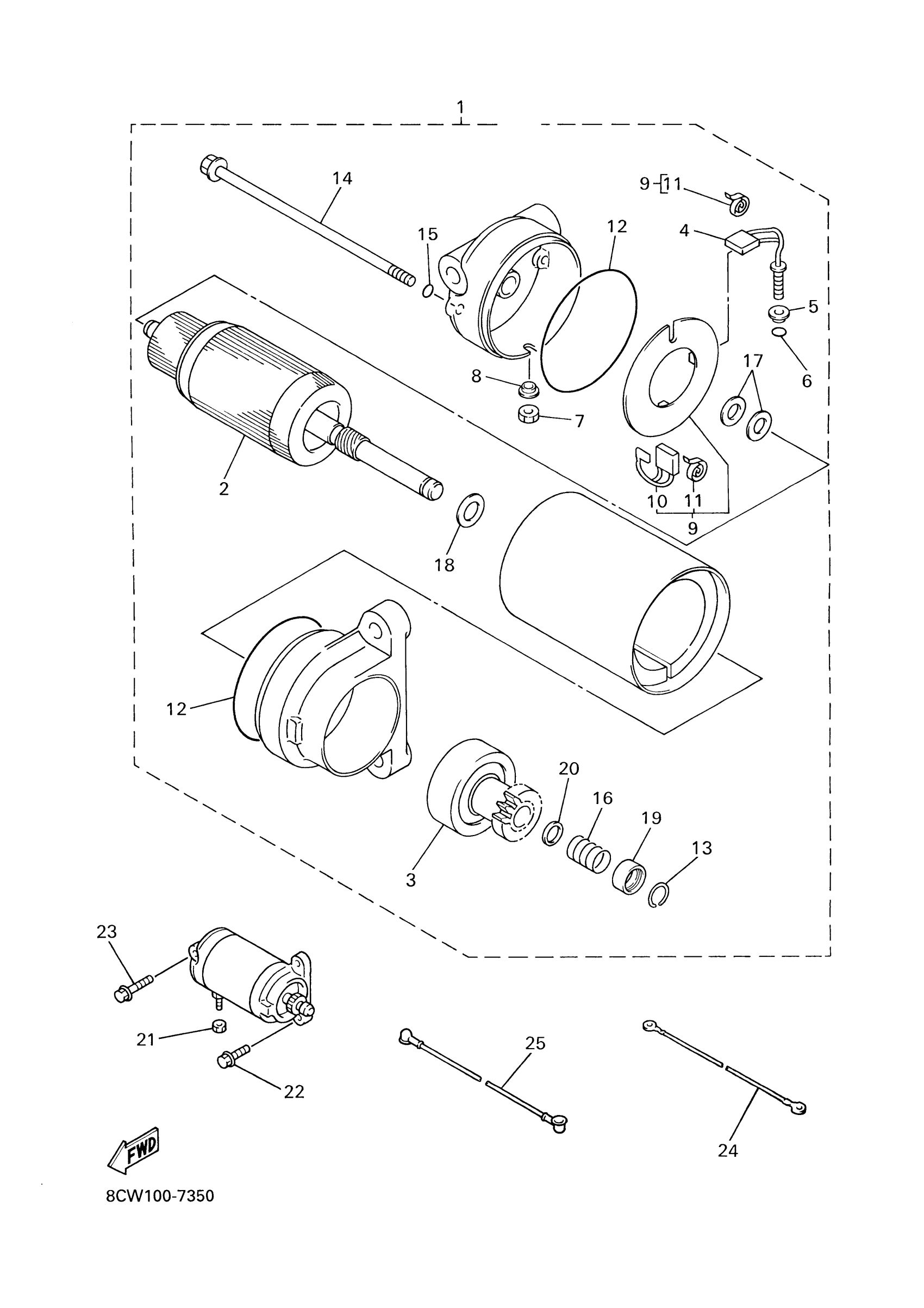 Yamaha VX500DXF (VMAX 500 DELUXE (ELEC START)) 8DT4 2001 STARTING MOTOR Diagram