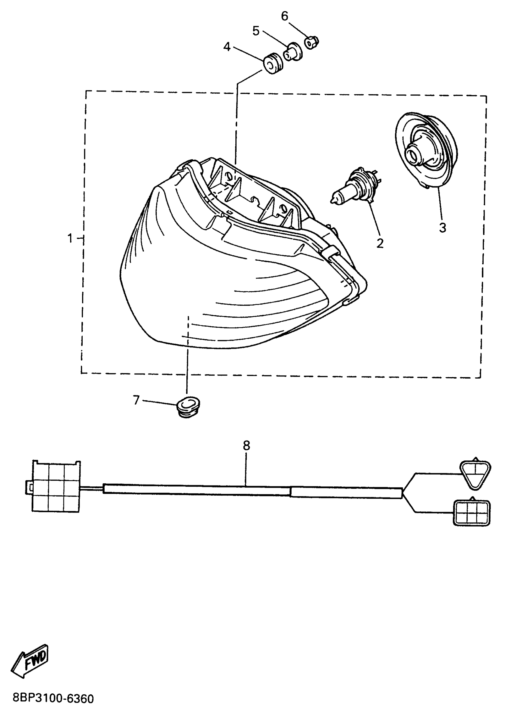 Yamaha VX500DXW (VMAX 500 DX) 1996 HEADLIGHT Diagram