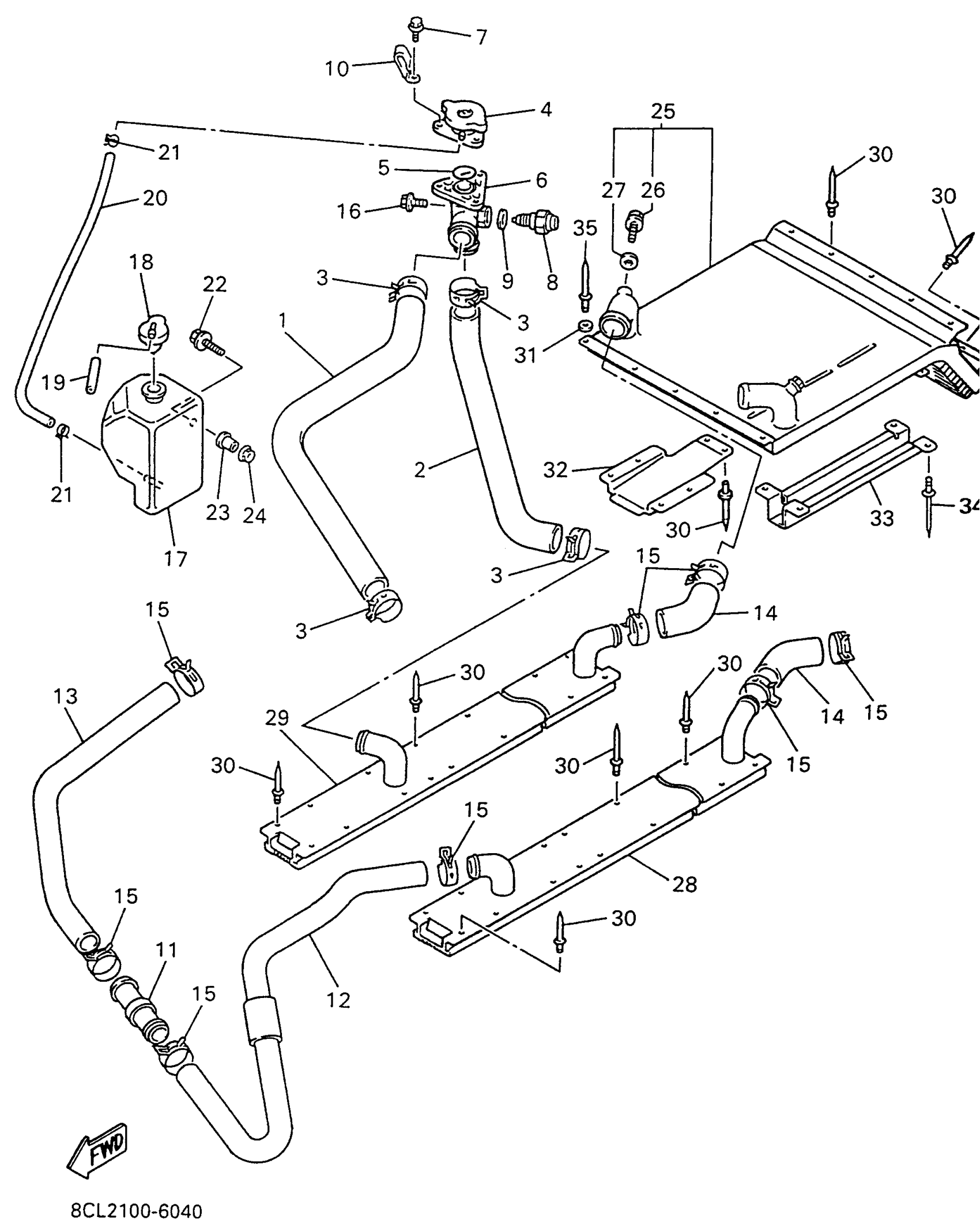 Yamaha VX500DXW (VMAX 500 DX) 1996 RADIATOR - HOSE Diagram
