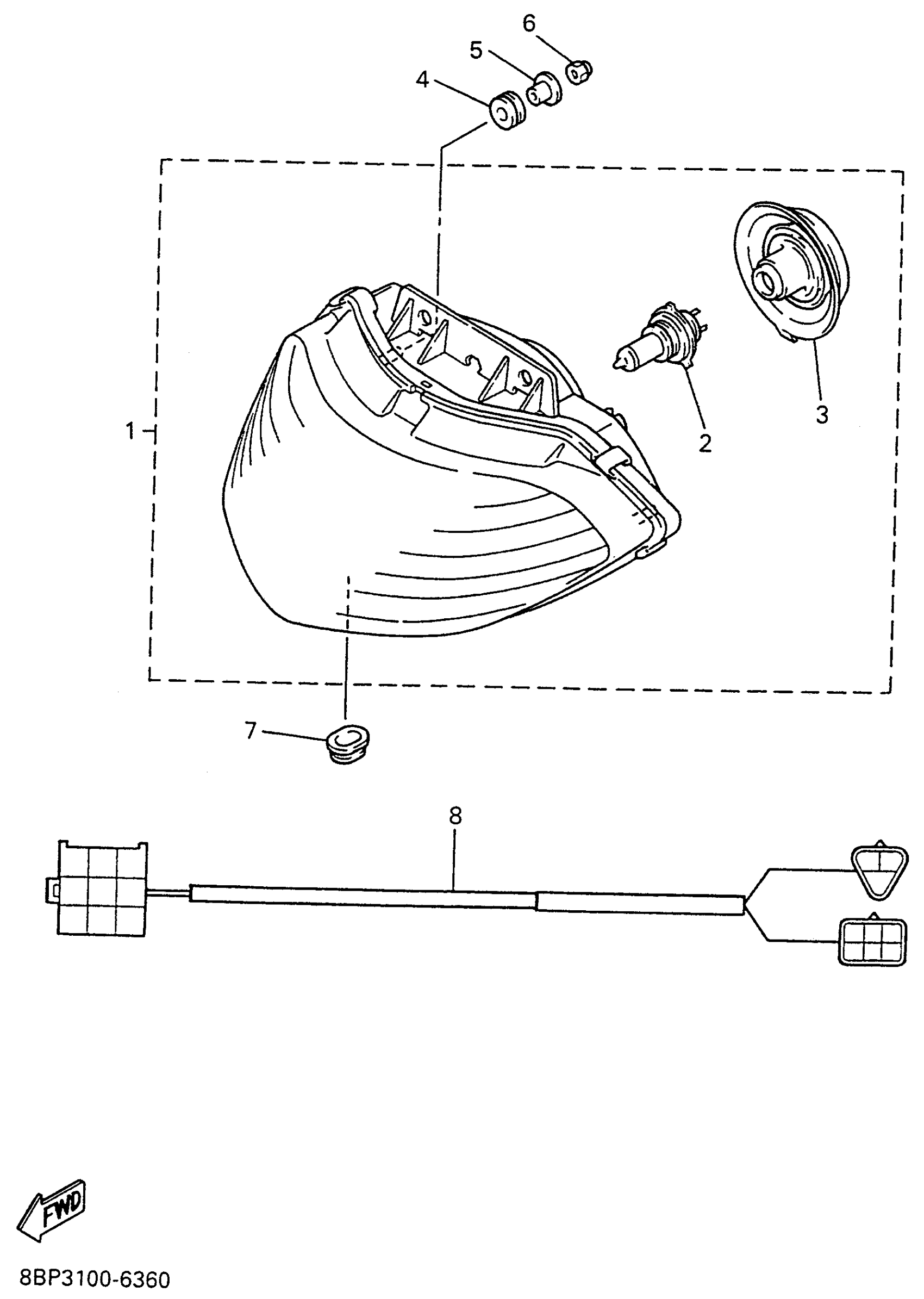 Yamaha VX500EW (VMAX 500 LE (ELEC START)) 1996 HEADLIGHT Diagram