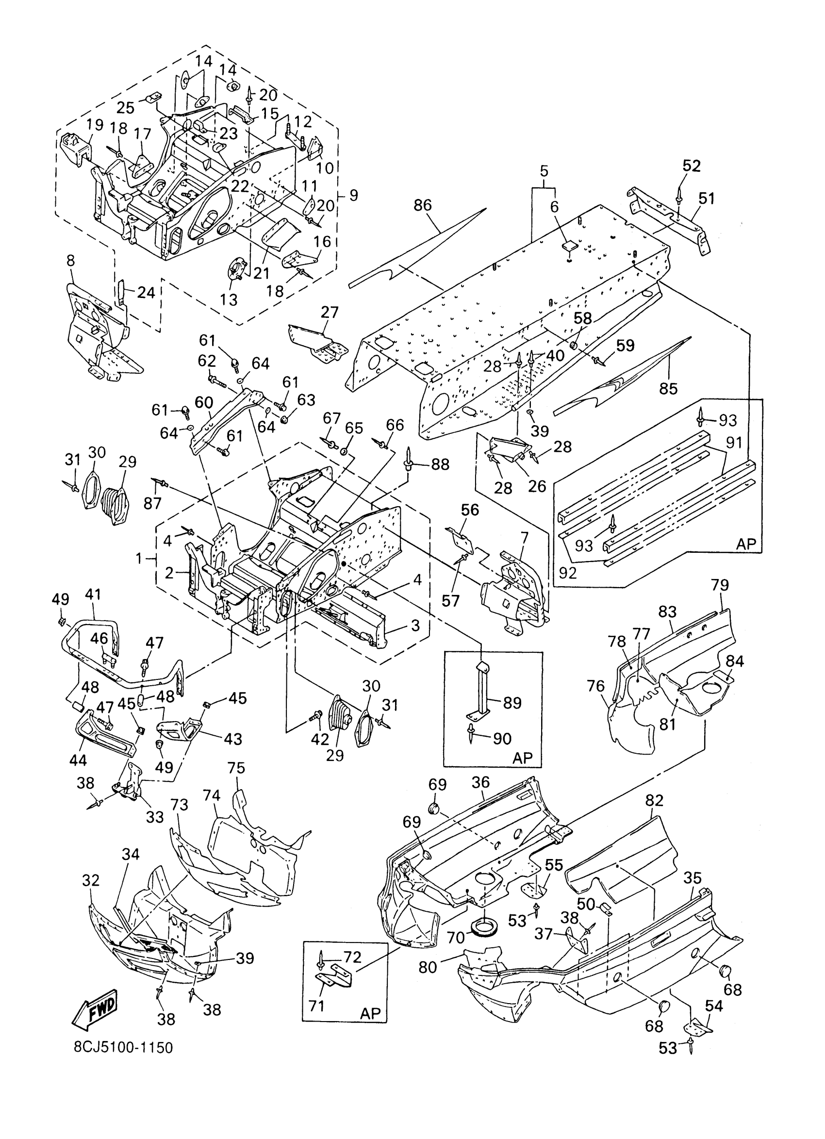 Yamaha VX500F (V-MAX 500) 8CJ5 2001 FRAME Diagram