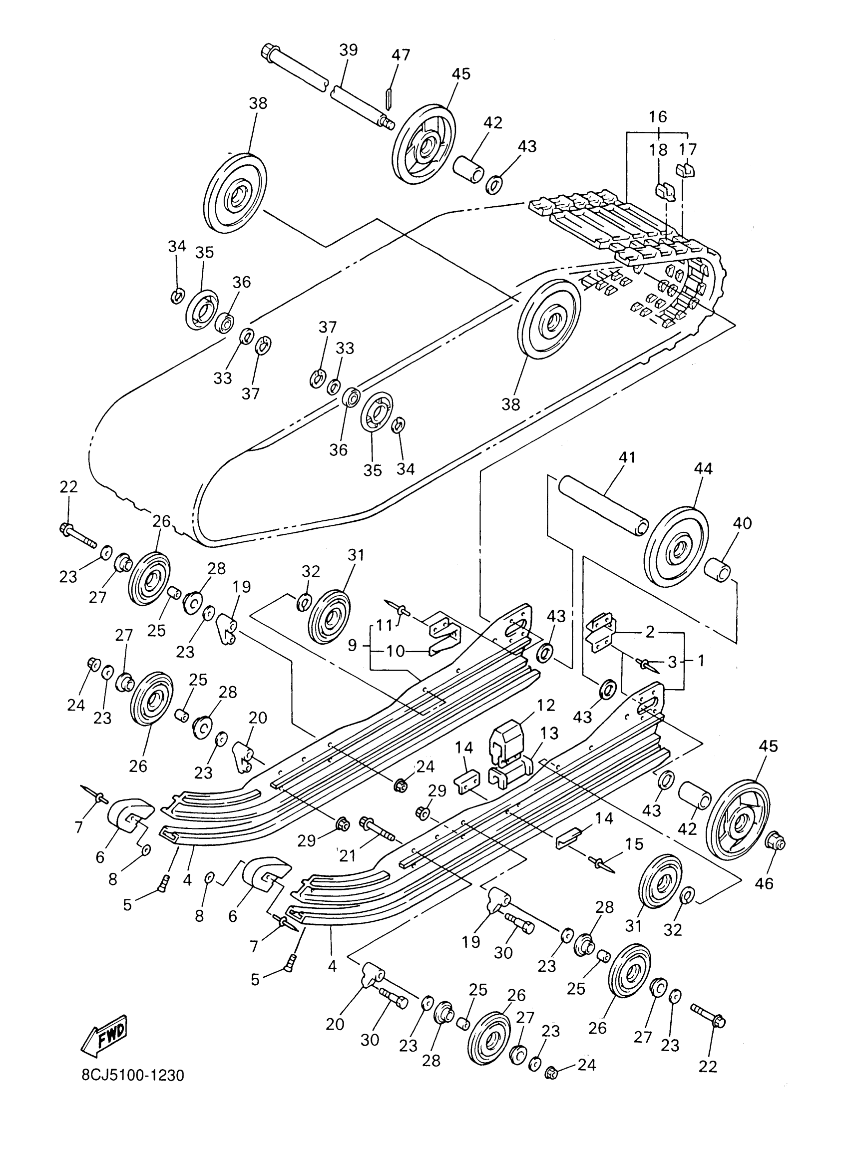 Yamaha VX500F (V-MAX 500) 8CJ5 2001 TRACK SUSPENSION 1 Diagram