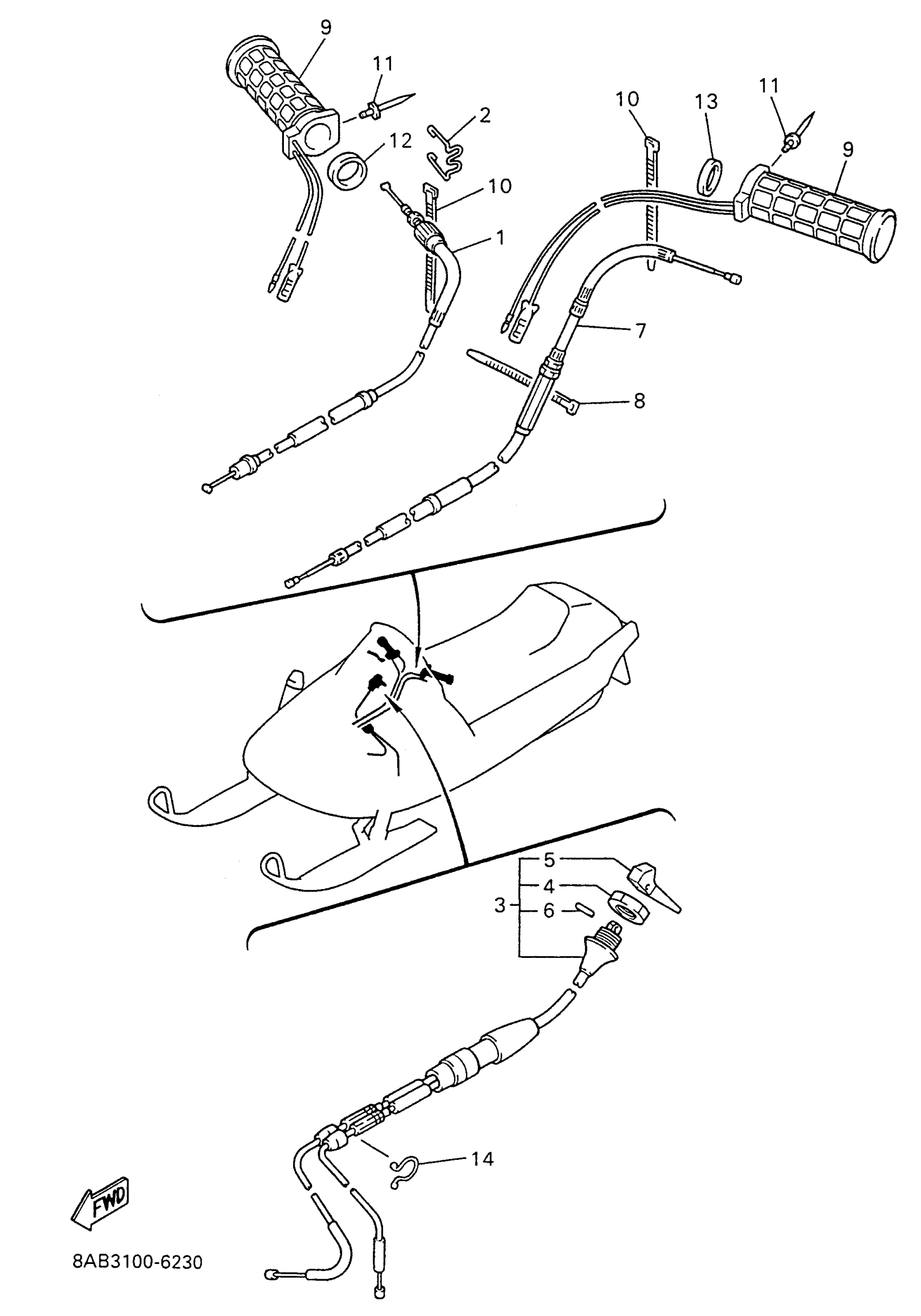 Yamaha VX500W (VMAX 500) 1996 CONTROL CABLE Diagram