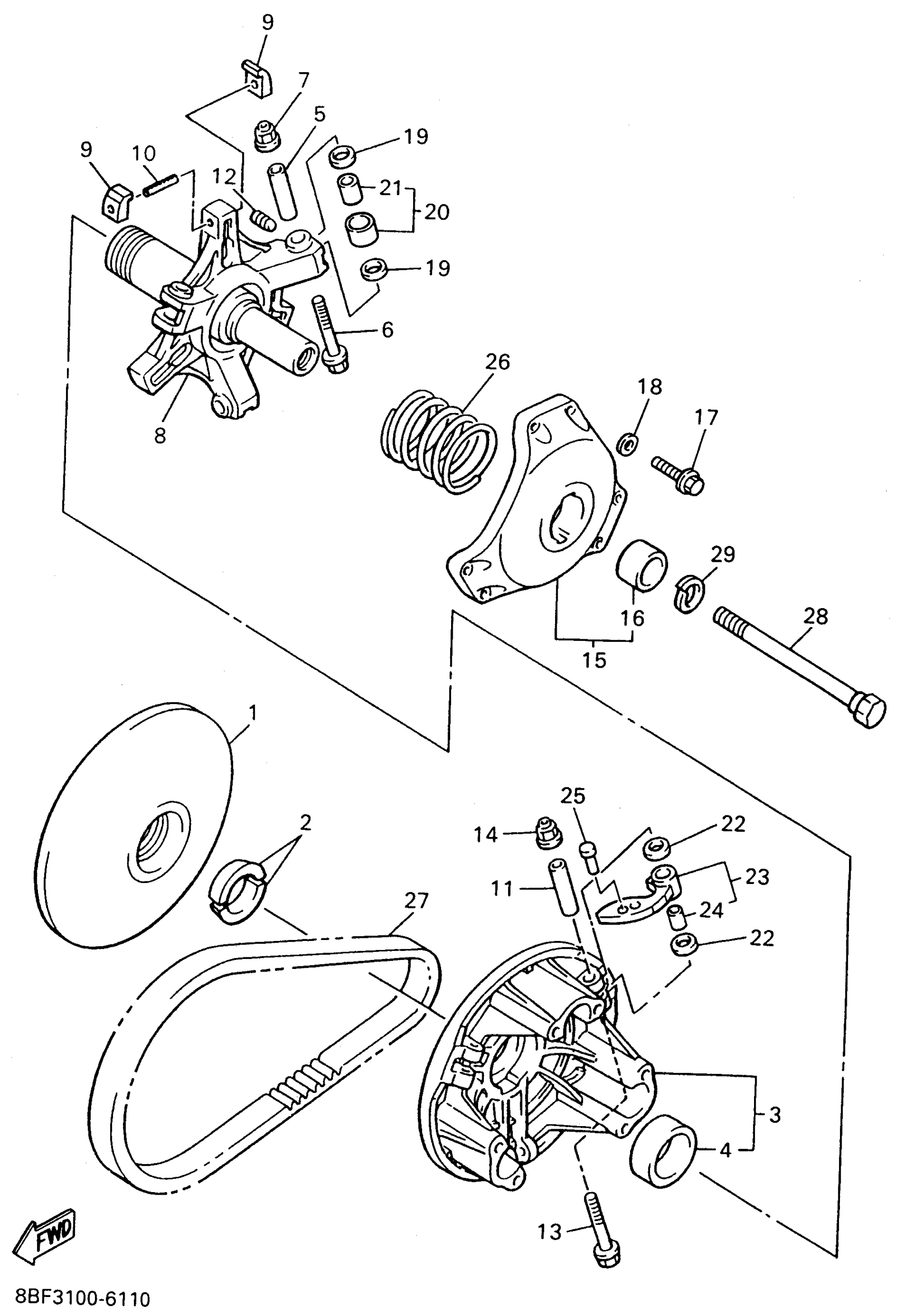 Yamaha VX500XTW (VMAX 500 XT PROACTION PLUS) 1996 PRIMARY SHEAVE Diagram