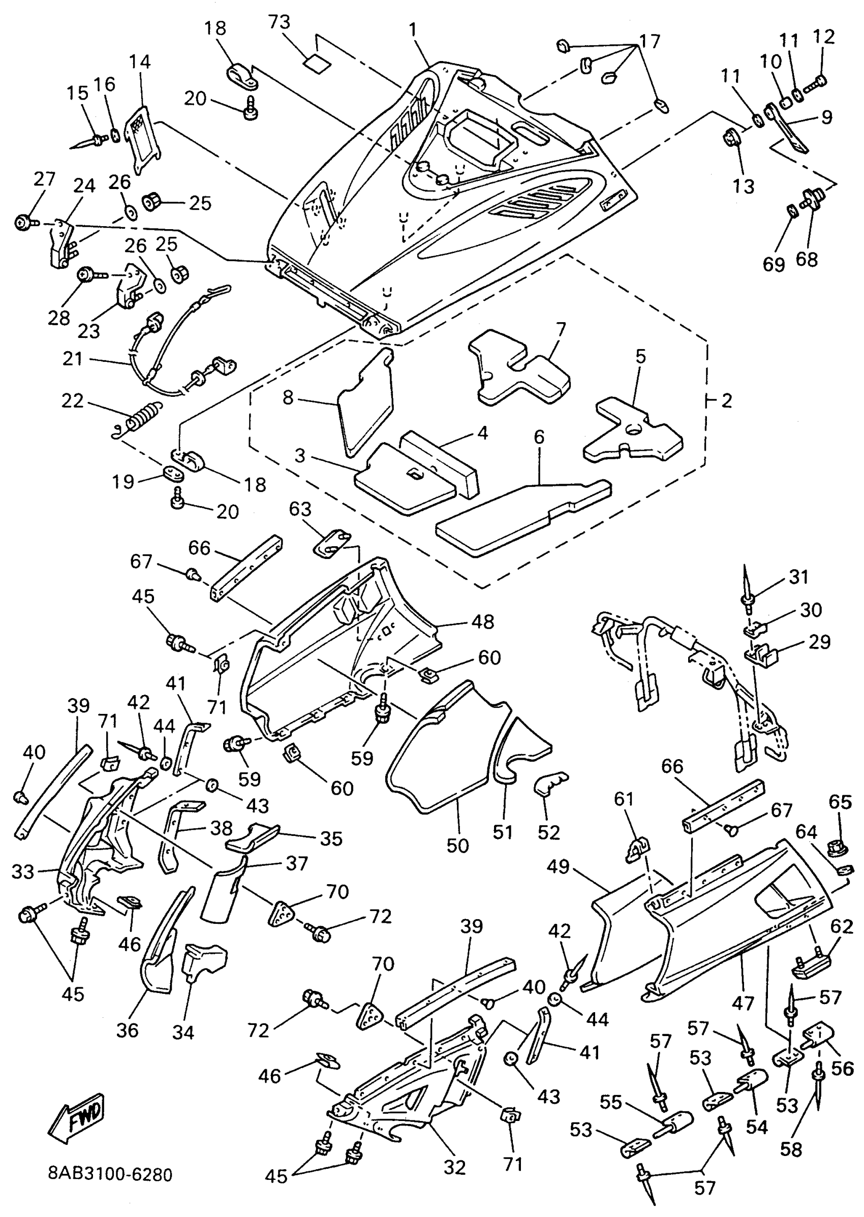 Yamaha VX500XTW (VMAX 500 XT PROACTION PLUS) 1996 SHROUD Diagram