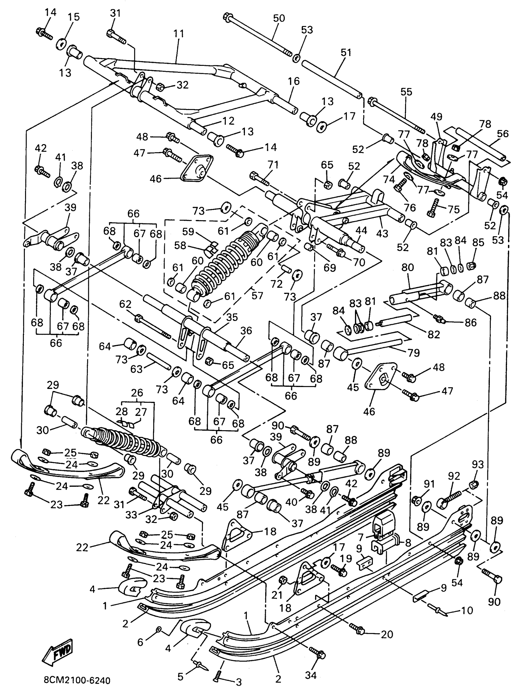 Yamaha VX500XTW (VMAX 500 XT PROACTION PLUS) 1996 TRACK SUSPENSION 2 Diagram