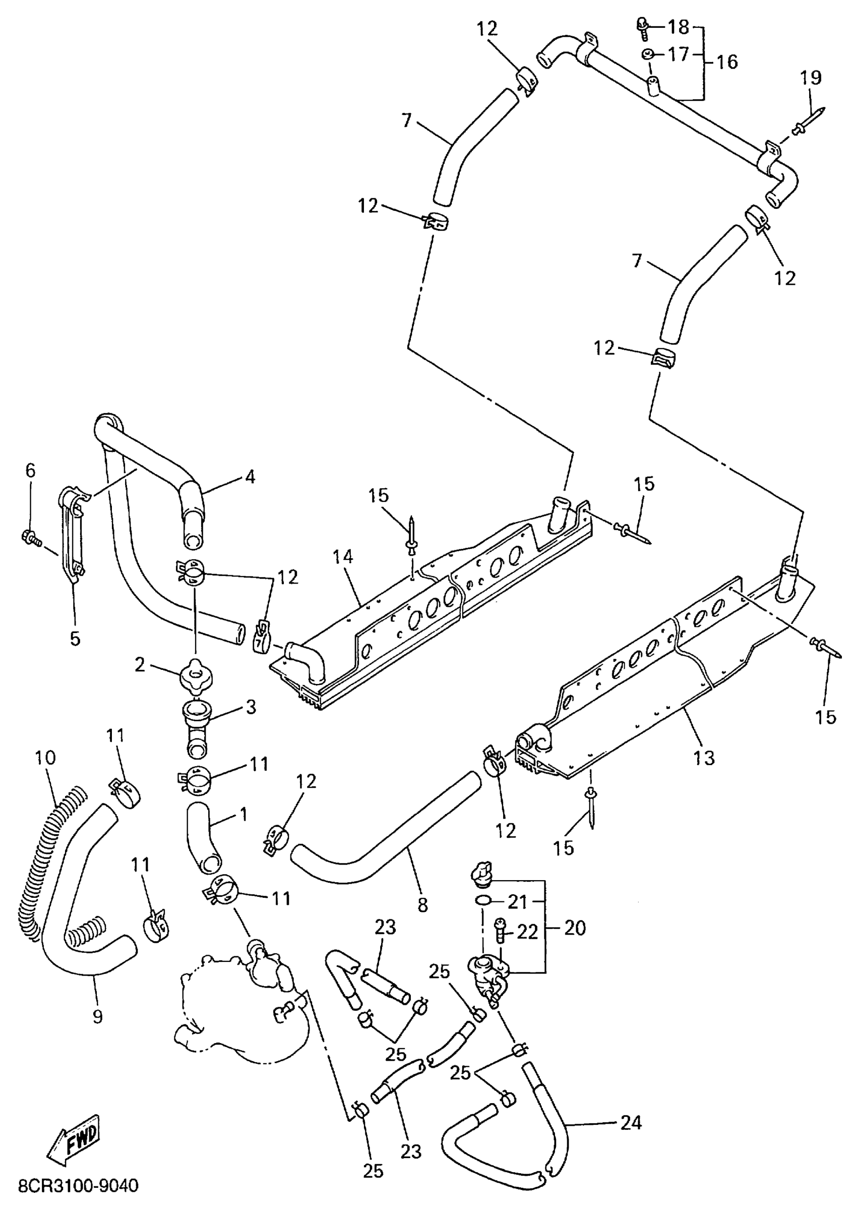 Yamaha VX600C (VMAX 600) 8CR3 1999 RADIATOR HOSE Diagram