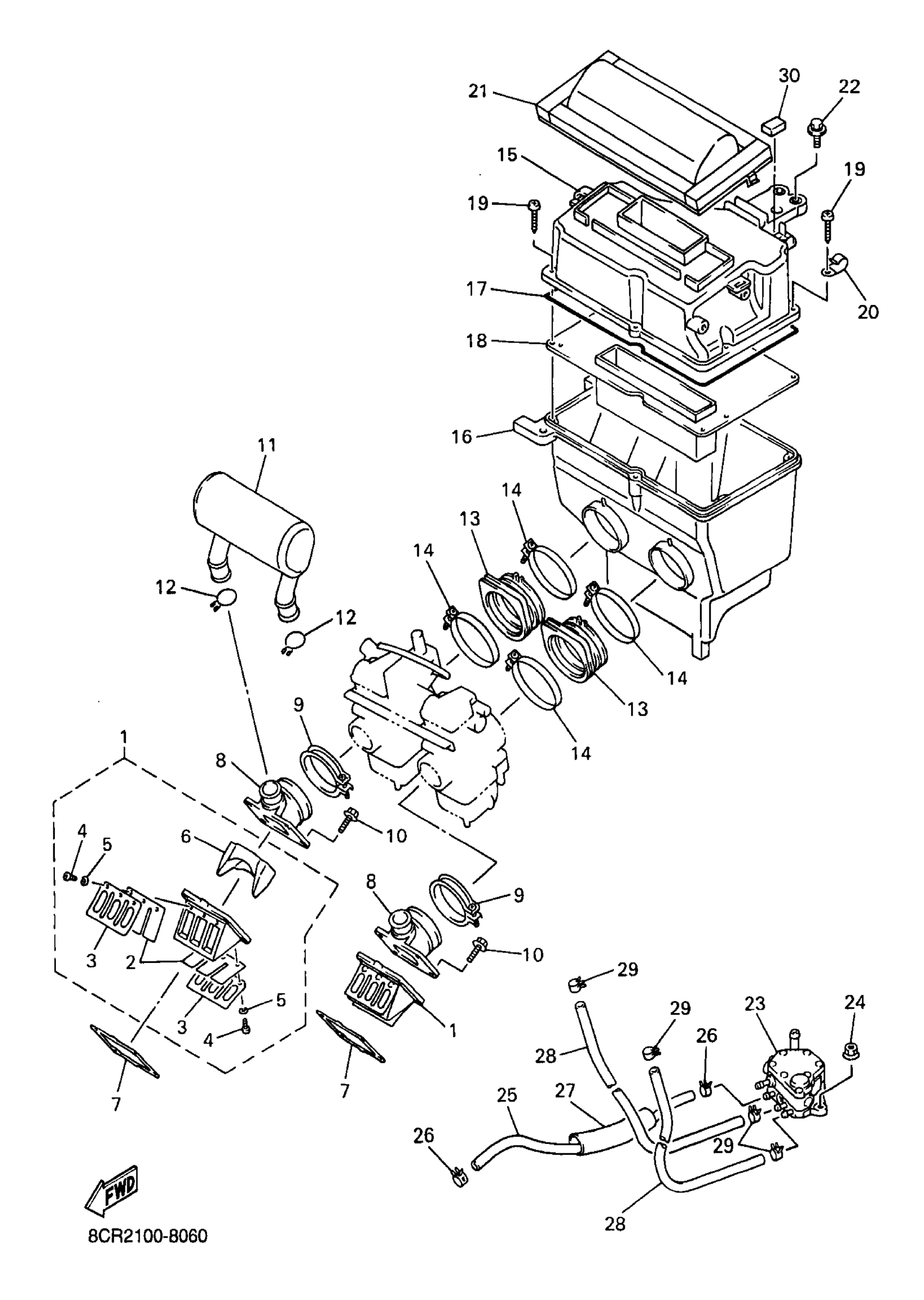 Yamaha VX600SXSB (VMAX 600 SXS (OHLINS FR SHOCKS)) 8CV2 1998 INTAKE Diagram