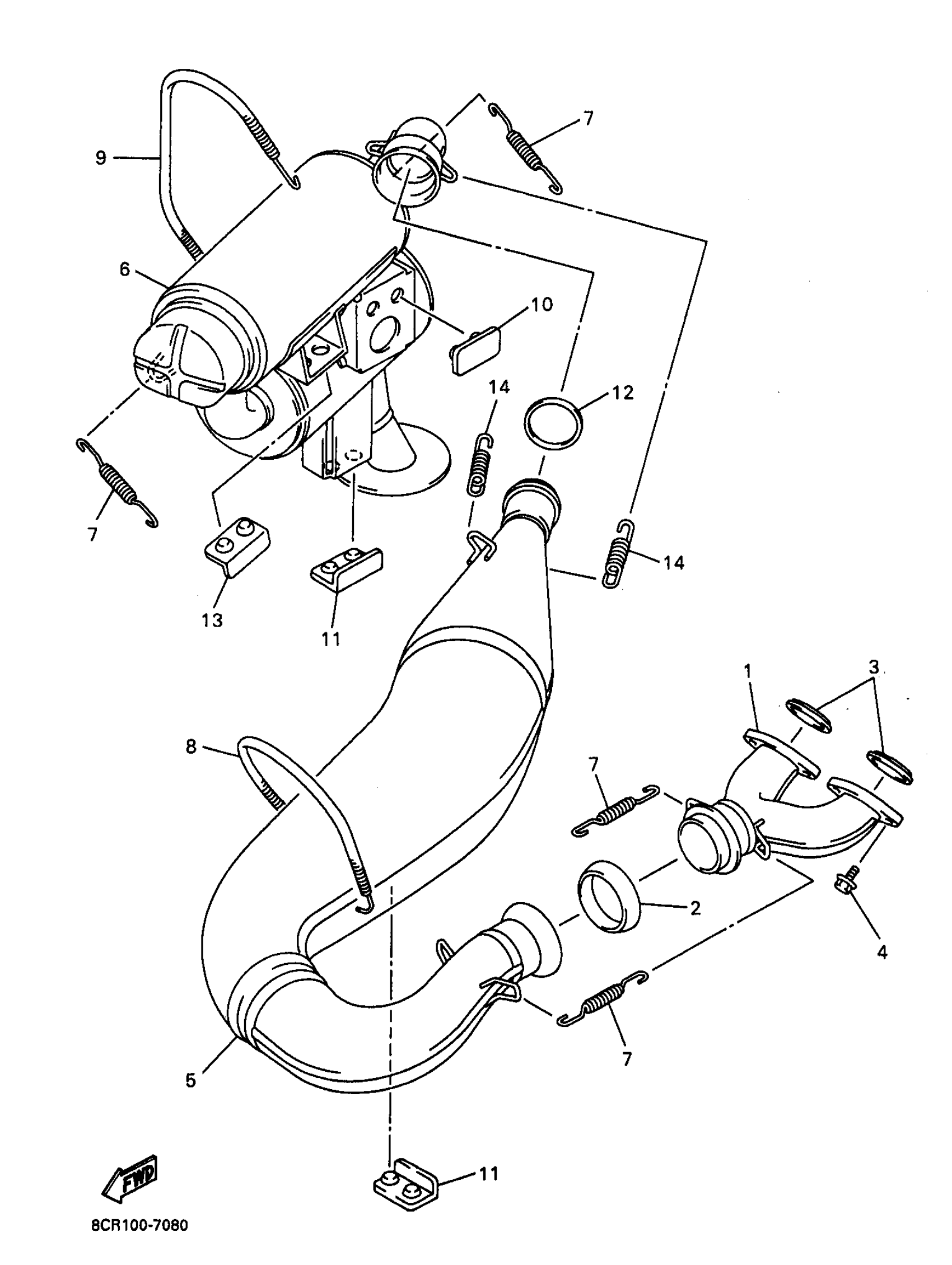 Yamaha VX600XTA (VMAX 600 XT) 8CR1 1997 EXHAUST Diagram