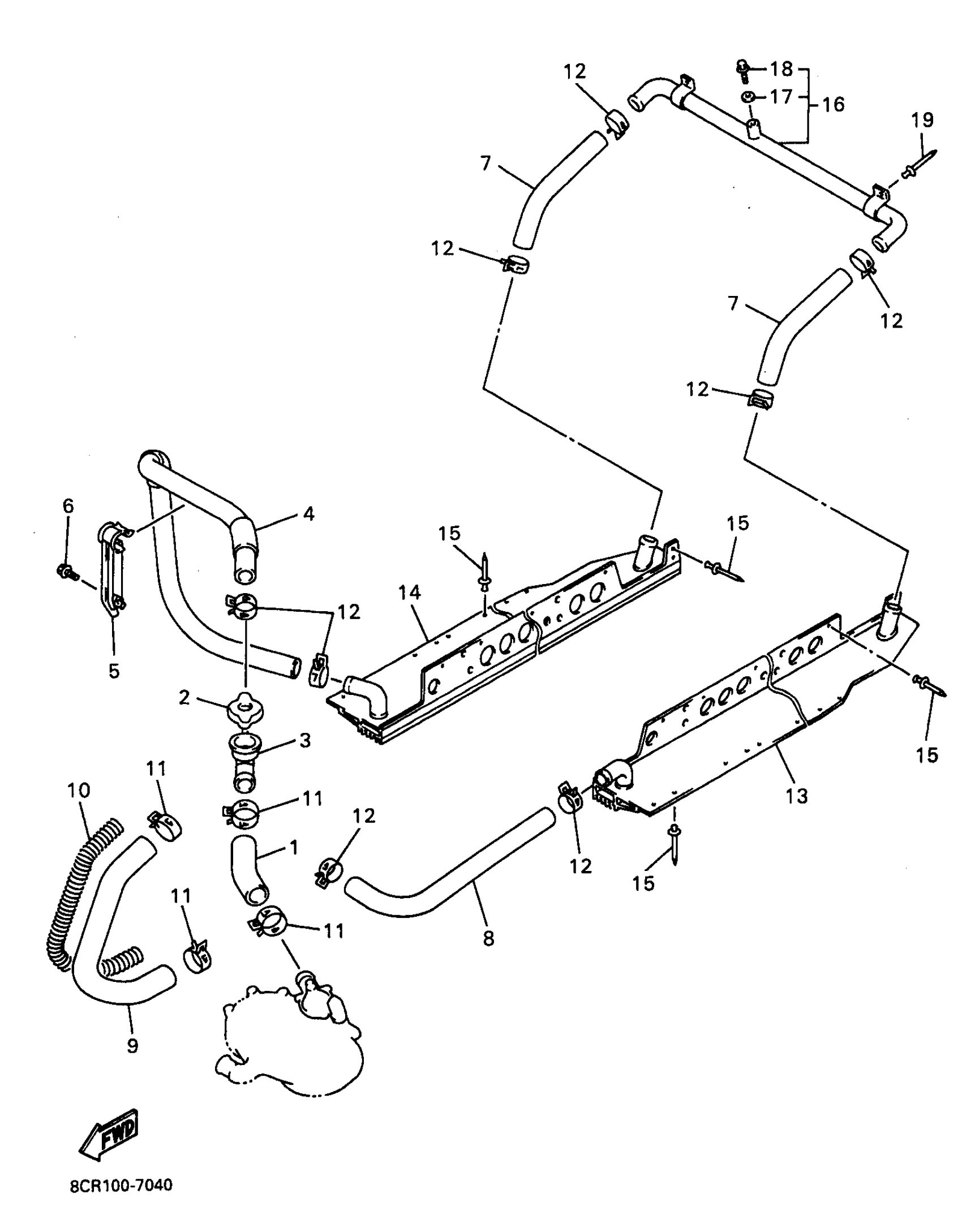 Yamaha VX600XTA (VMAX 600 XT) 8CR1 1997 RADIATOR HOSE Diagram