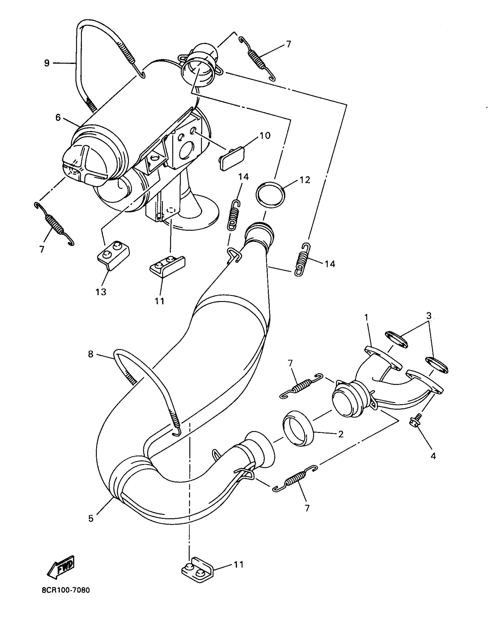 Yamaha VX600XTCRA (VMAX 600 XTC (REVERSE)) 8DB1 1997 EXHAUST Diagram