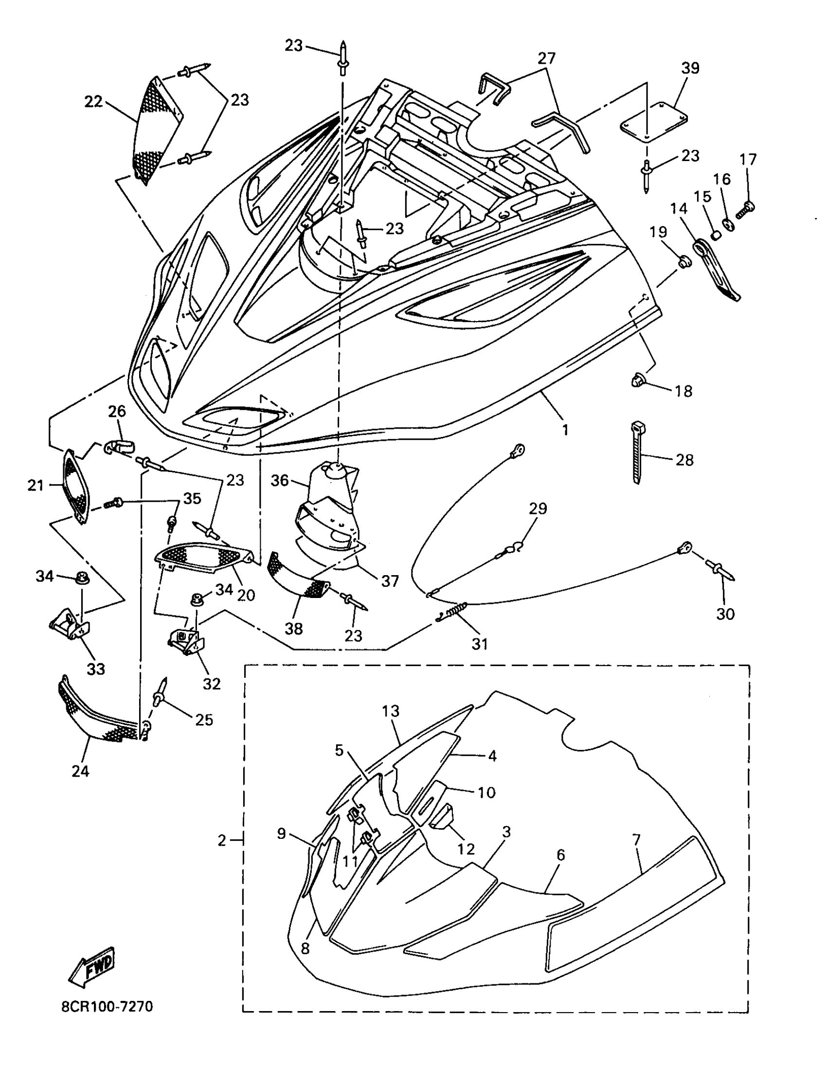 Yamaha VX600XTCRA (VMAX 600 XTC (REVERSE)) 8DB1 1997 SHROUD Diagram