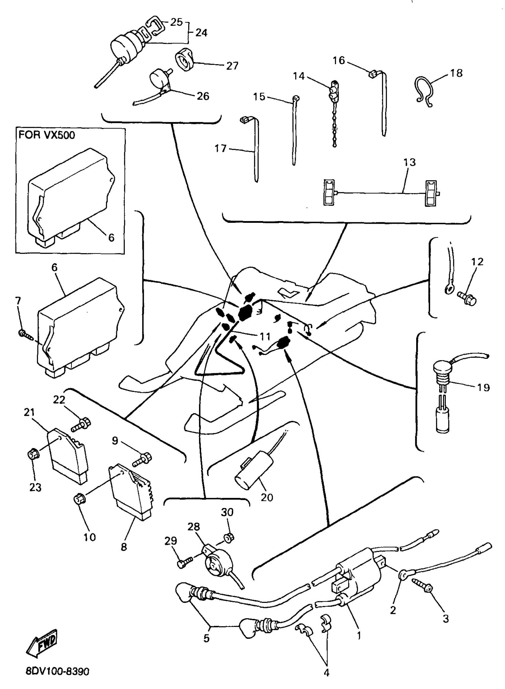 Yamaha VX600XTRB (VMAX 600 XTR (ELEC START+REVERSE)) BH20500 1998 ELECTRICAL 1 Diagram