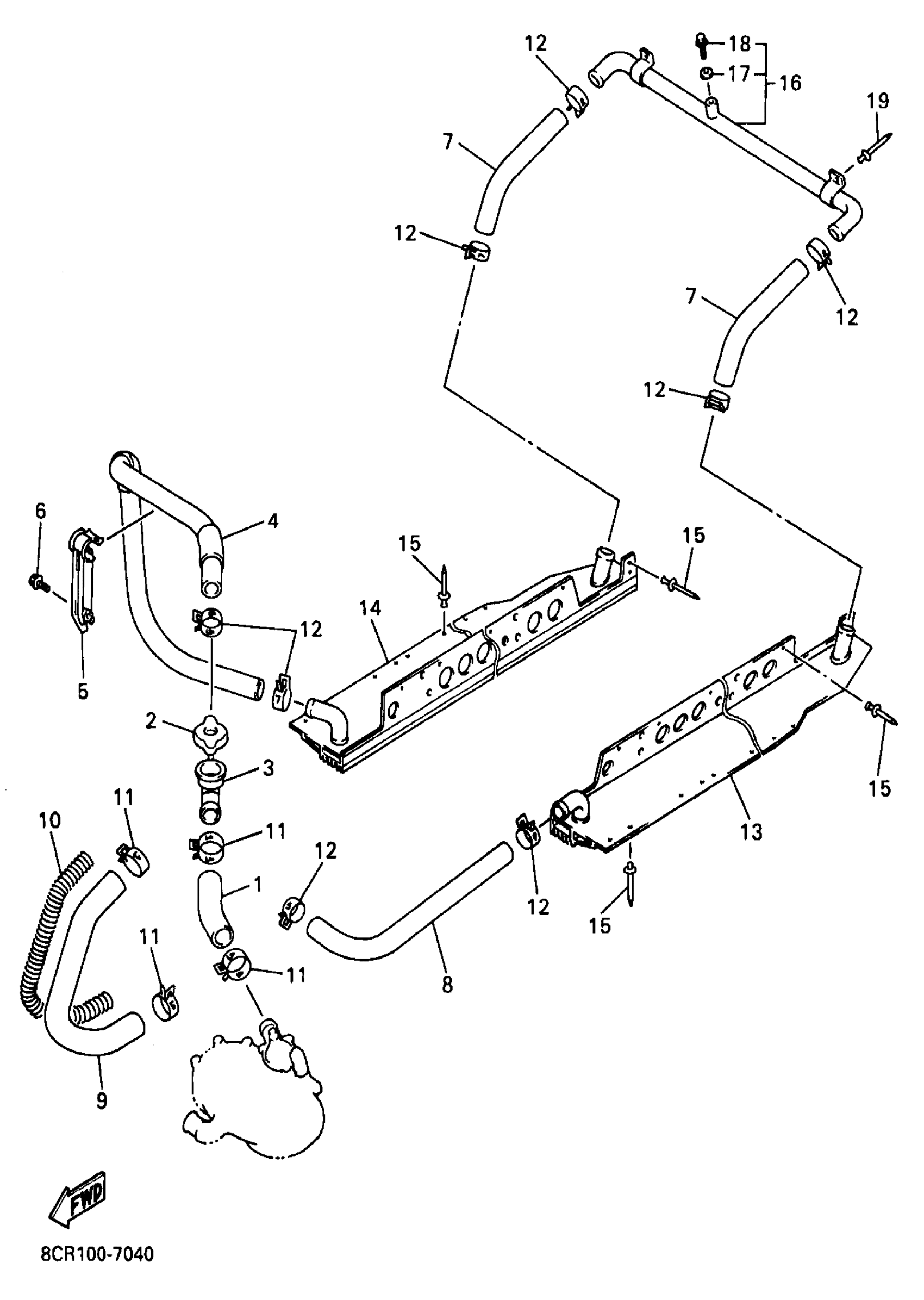 Yamaha VX600XTRB (VMAX 600 XTR (ELEC START+REVERSE)) BH20500 1998 RADIATOR HOSE Diagram