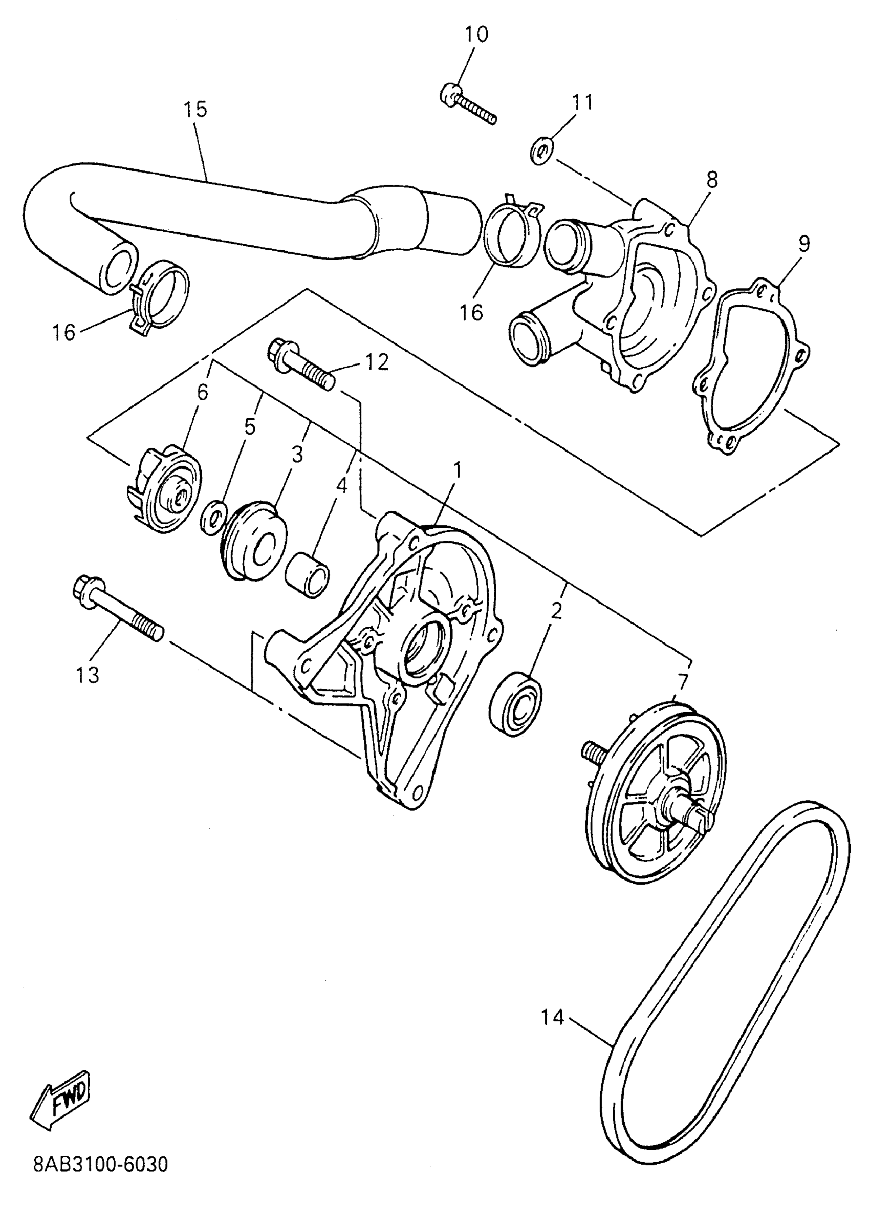 Yamaha VX600XTW (VMAX 600 XT PROACTION PLUS) 1996 WATER PUMP Diagram