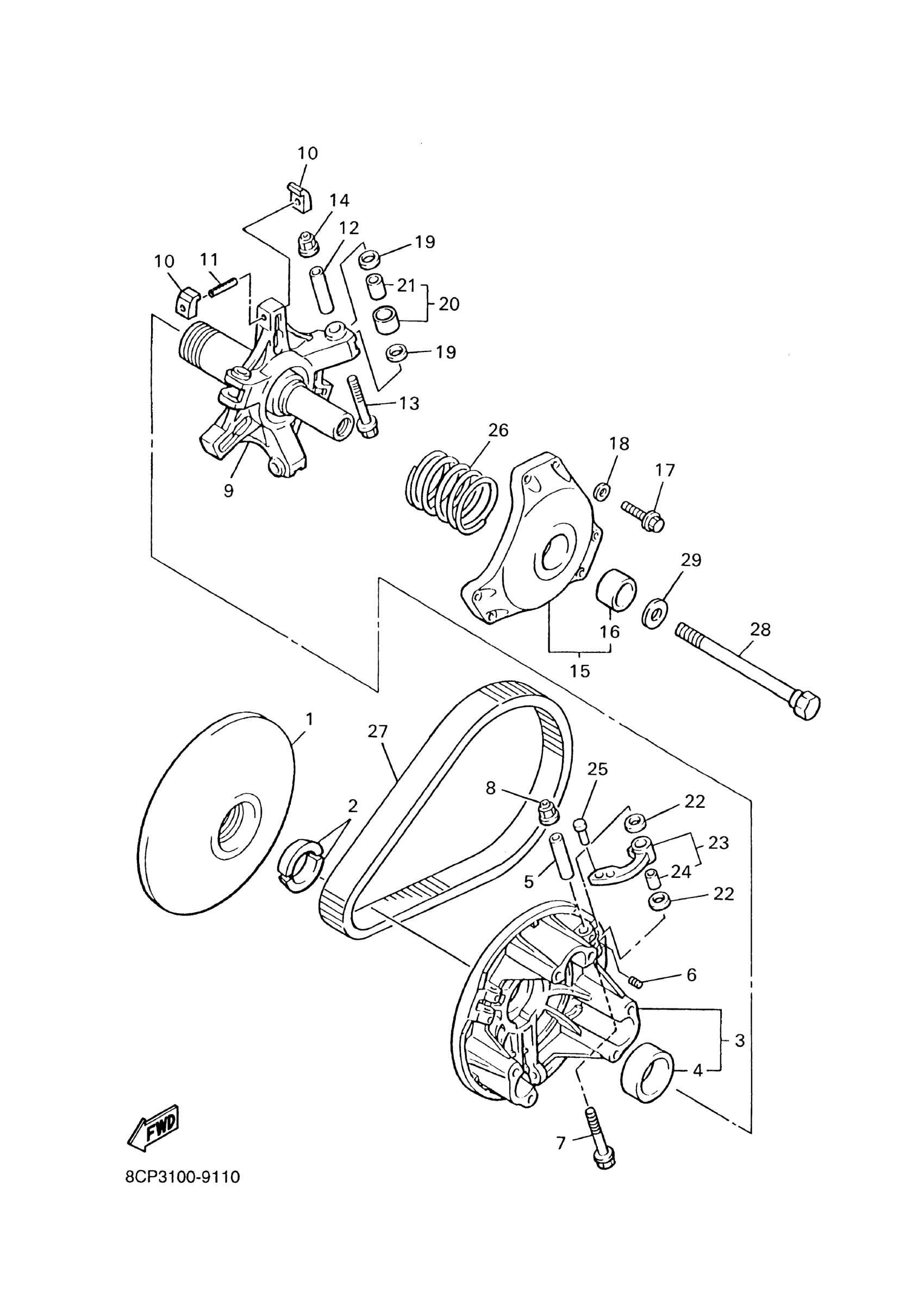 Yamaha VX700D (VMAX 700) 8DS3 2000 PRIMARY SHEAVE Diagram