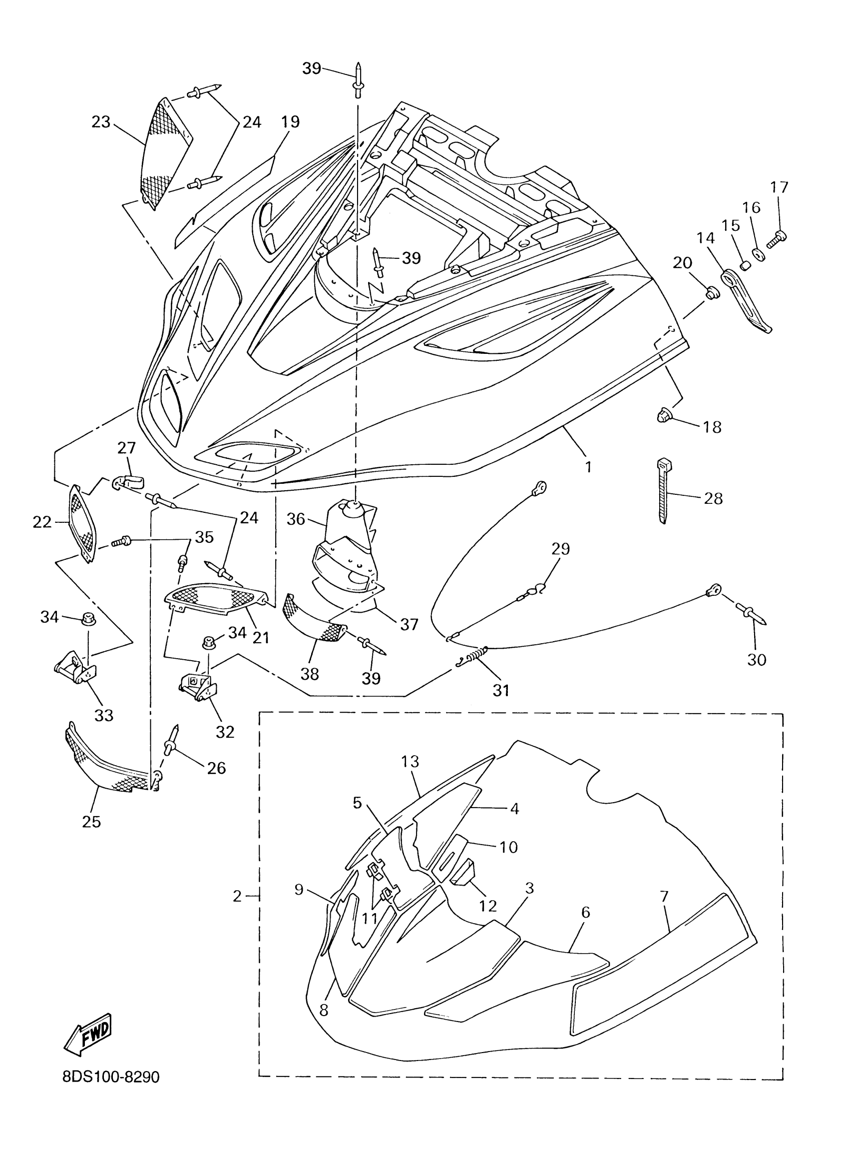 Yamaha VX700DXD (VMAX 700 DELUXE (ELEC START)) 8DY2 2000 SHROUD Diagram