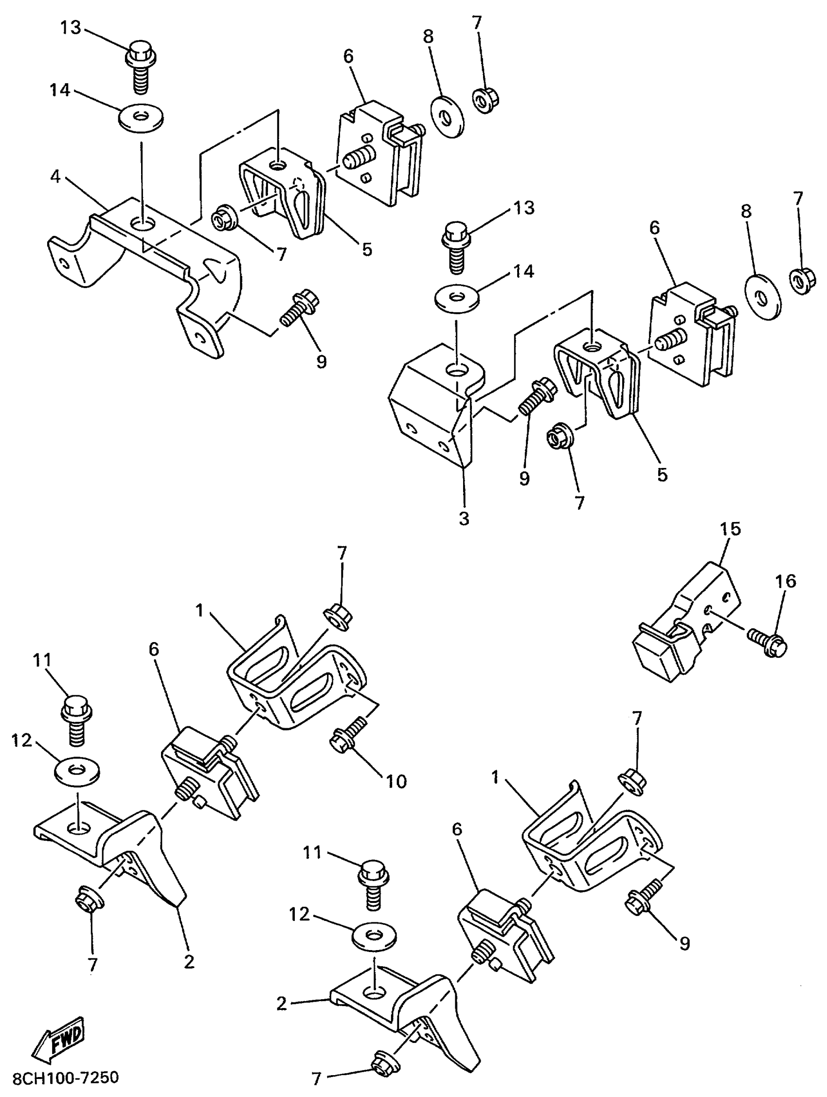 Yamaha VX700ERC (VMAX 700 DELUXE (ELEC START)) 8DY1 1999 ENGINE BRACKET Diagram
