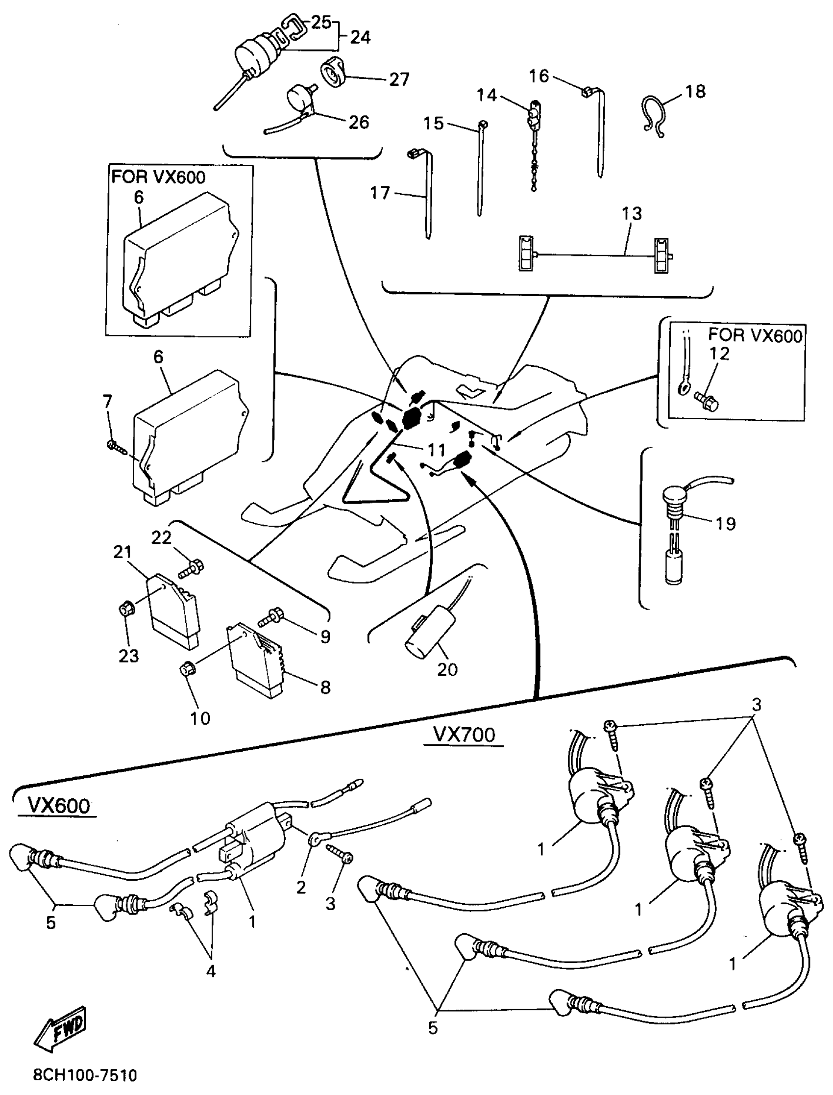 Yamaha VX700SXA (VMAX 700 SX) 8CH1 1997 ELECTRICAL 1 Diagram