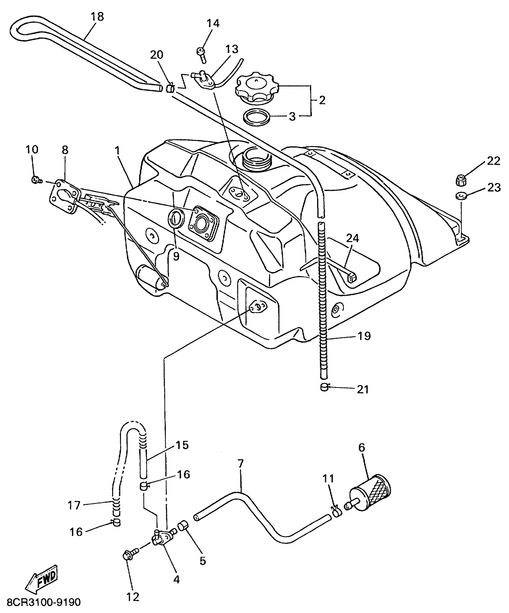 Yamaha VX700SXBC (VMAX 700 SX) 8CH3 1999 FUEL TANK Diagram