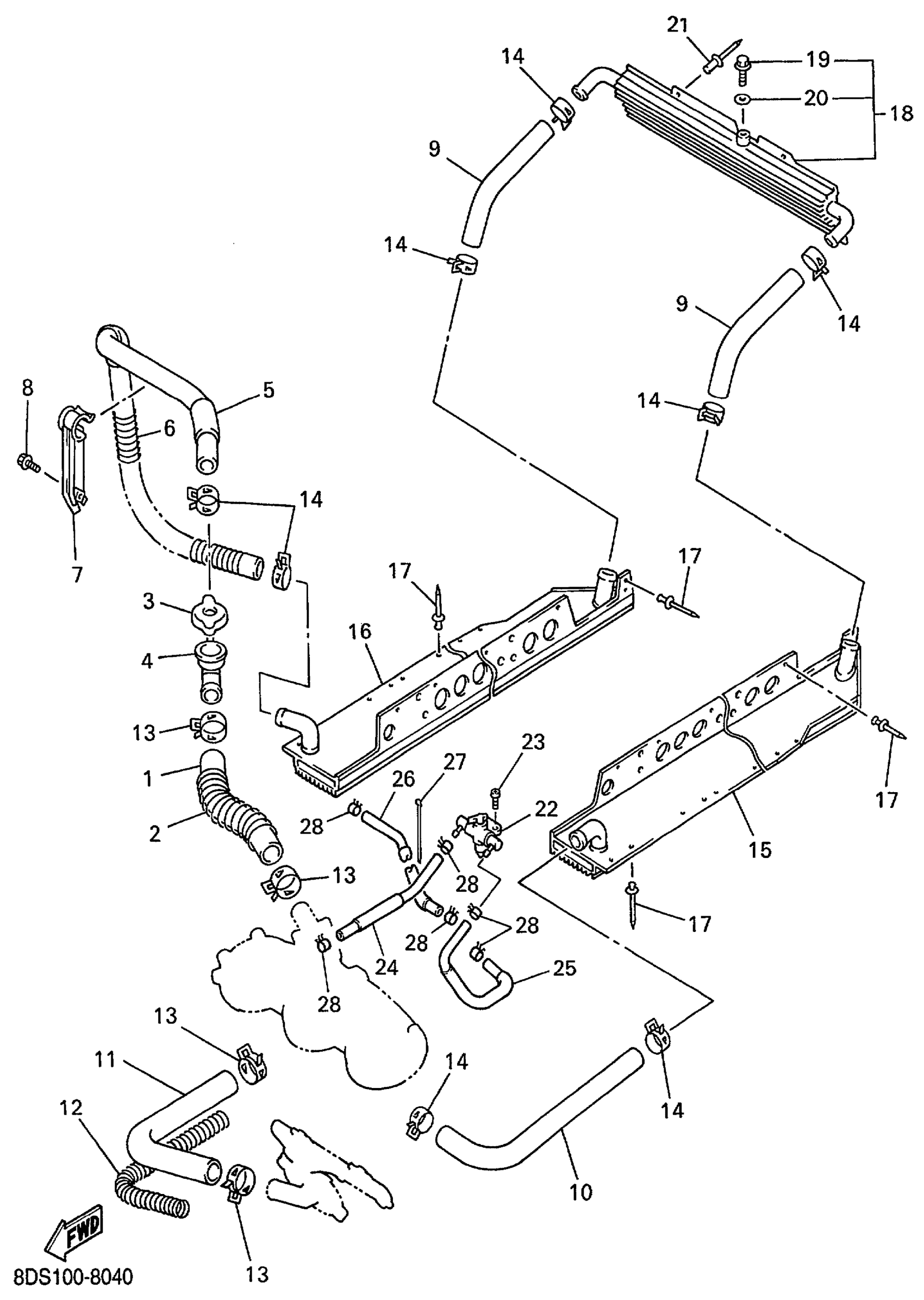 Yamaha VX700SXBC (VMAX 700 SX) 8CH3 1999 RADIATOR HOSE Diagram