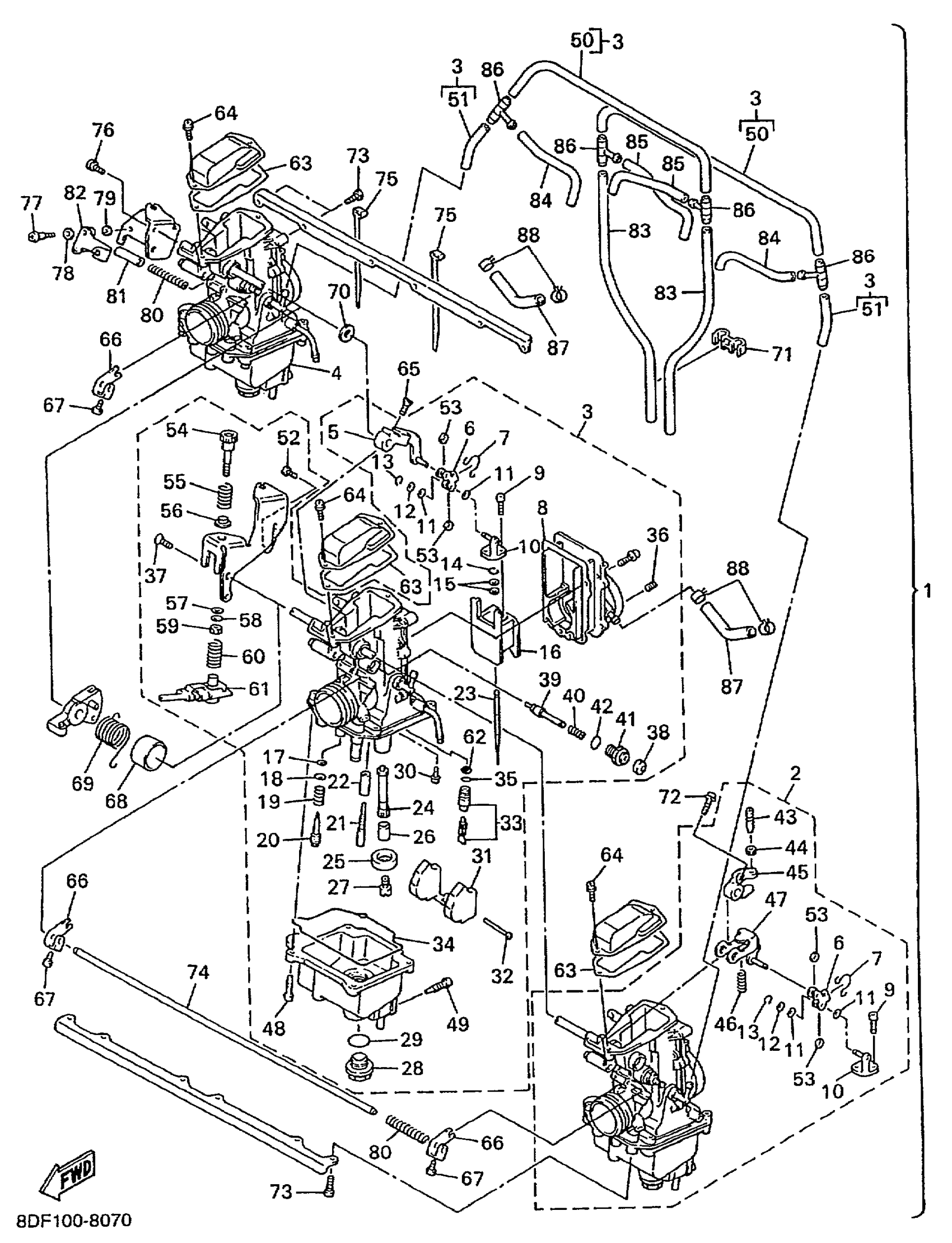 Yamaha VX700SXSB (VMAX 700 SXS (OHLINS FR SHOCKS)) 8DU1 1998 CARBURETOR Diagram