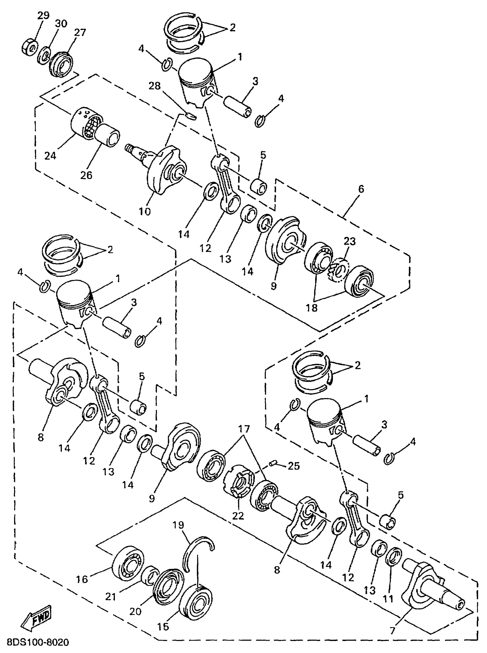 Yamaha VX700SXSB (VMAX 700 SXS (OHLINS FR SHOCKS)) 8DU1 1998 CRANKSHAFT PISTON Diagram
