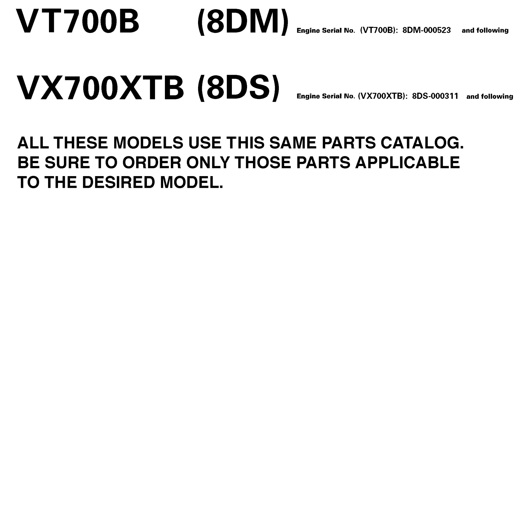 Yamaha VX700XTB (VMAX 700 XT) 8DM1 1998 ~MODELS IN THIS CATALOG Diagram