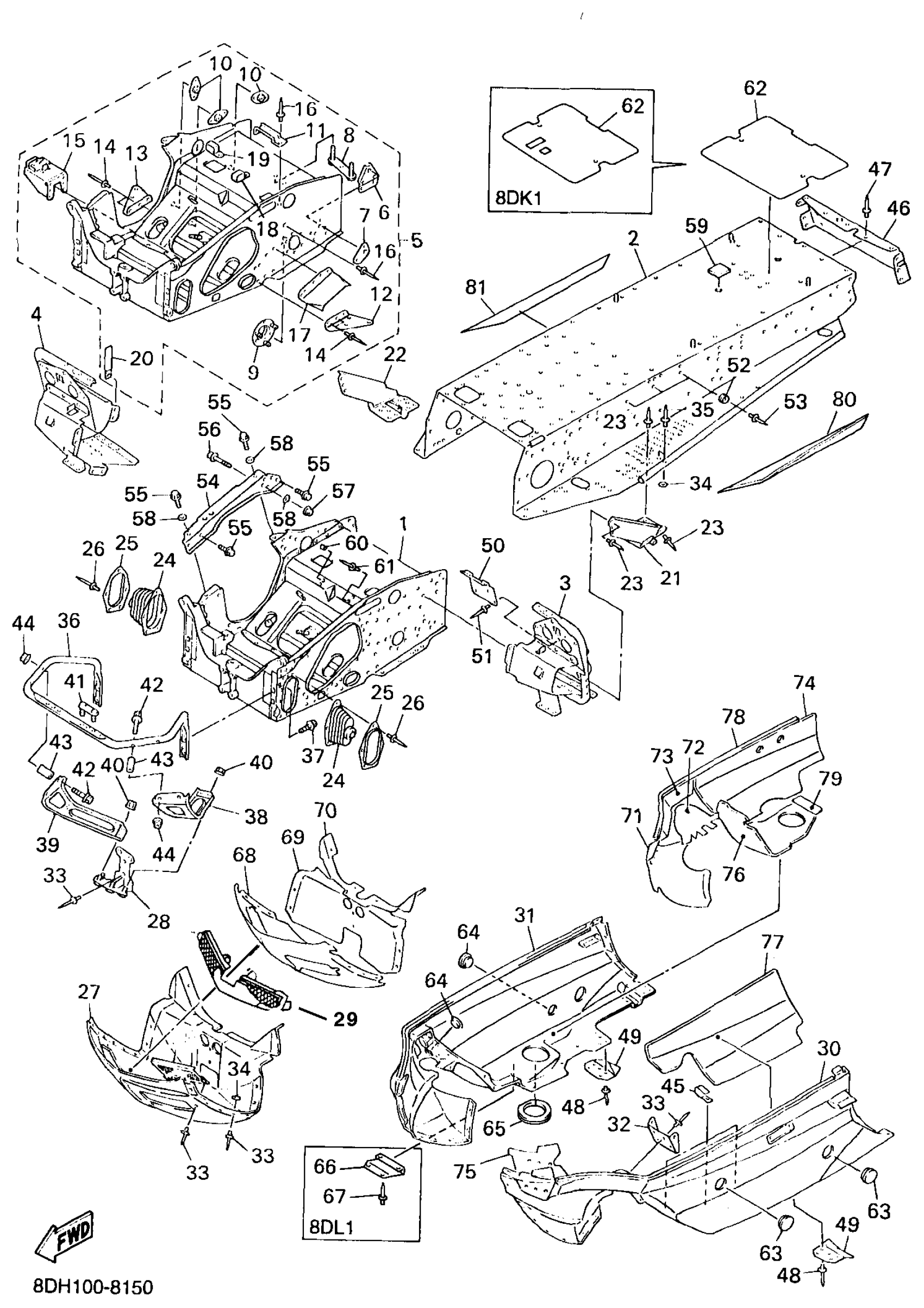 Yamaha VX700XTCPB (VMAX 700 XTCP (PLASTIC SKI, 1.5"TRACK)) 8DL1 1998 FRAME Diagram