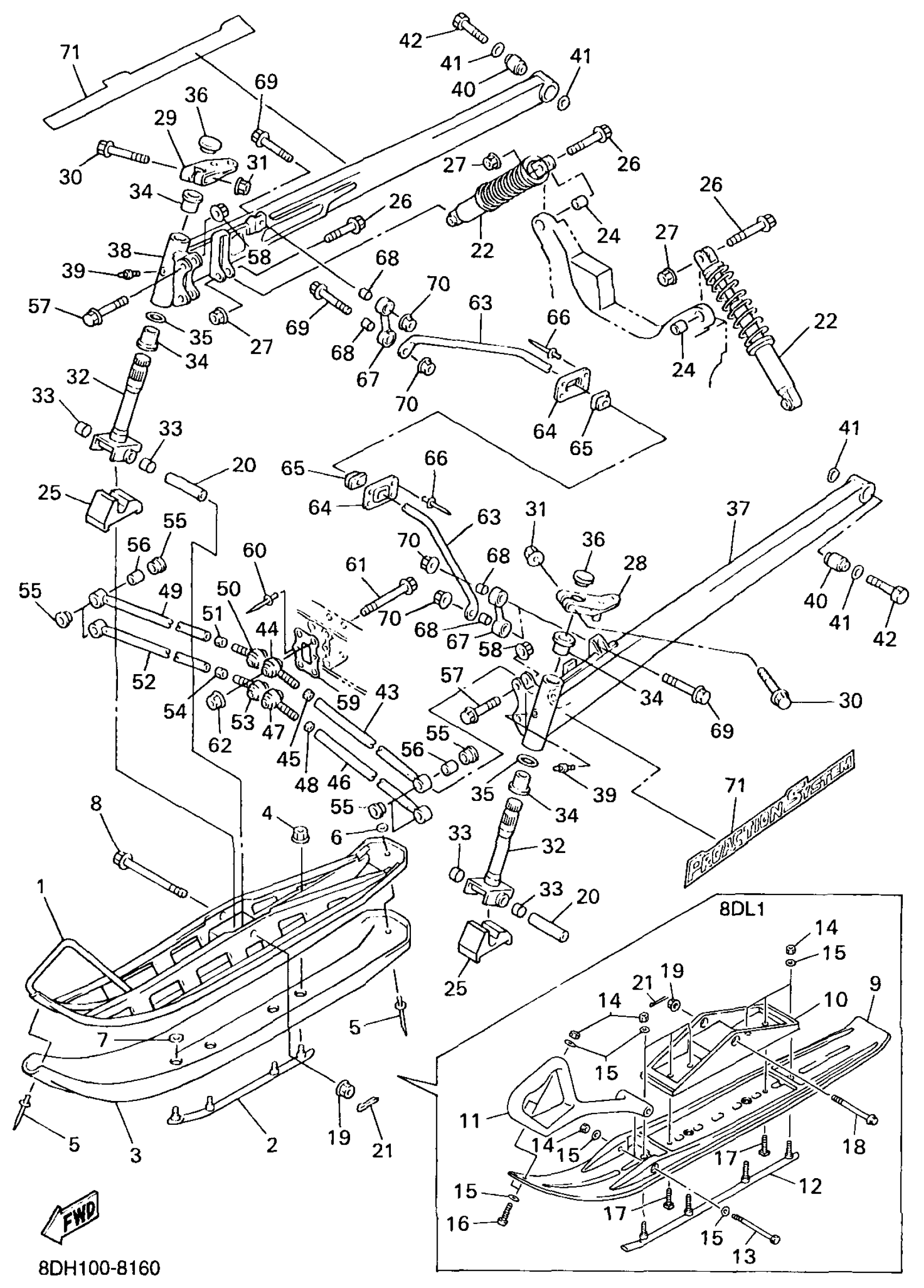 Yamaha VX700XTCPB (VMAX 700 XTCP (PLASTIC SKI, 1.5"TRACK)) 8DL1 1998 SKI Diagram