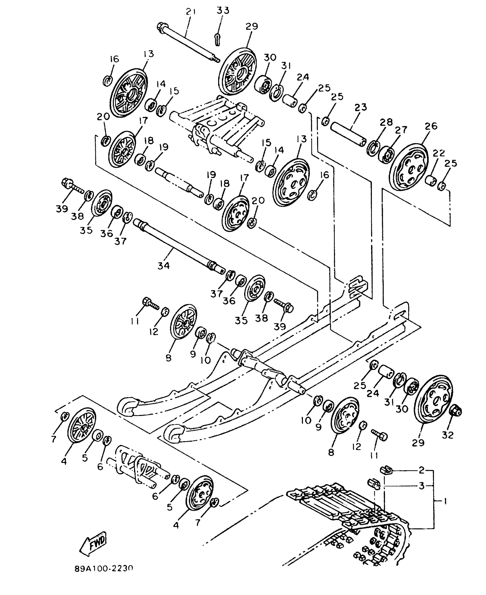 Yamaha VX750T (VMAX-4) 1993 TRACK SUSPENSION 1 Diagram
