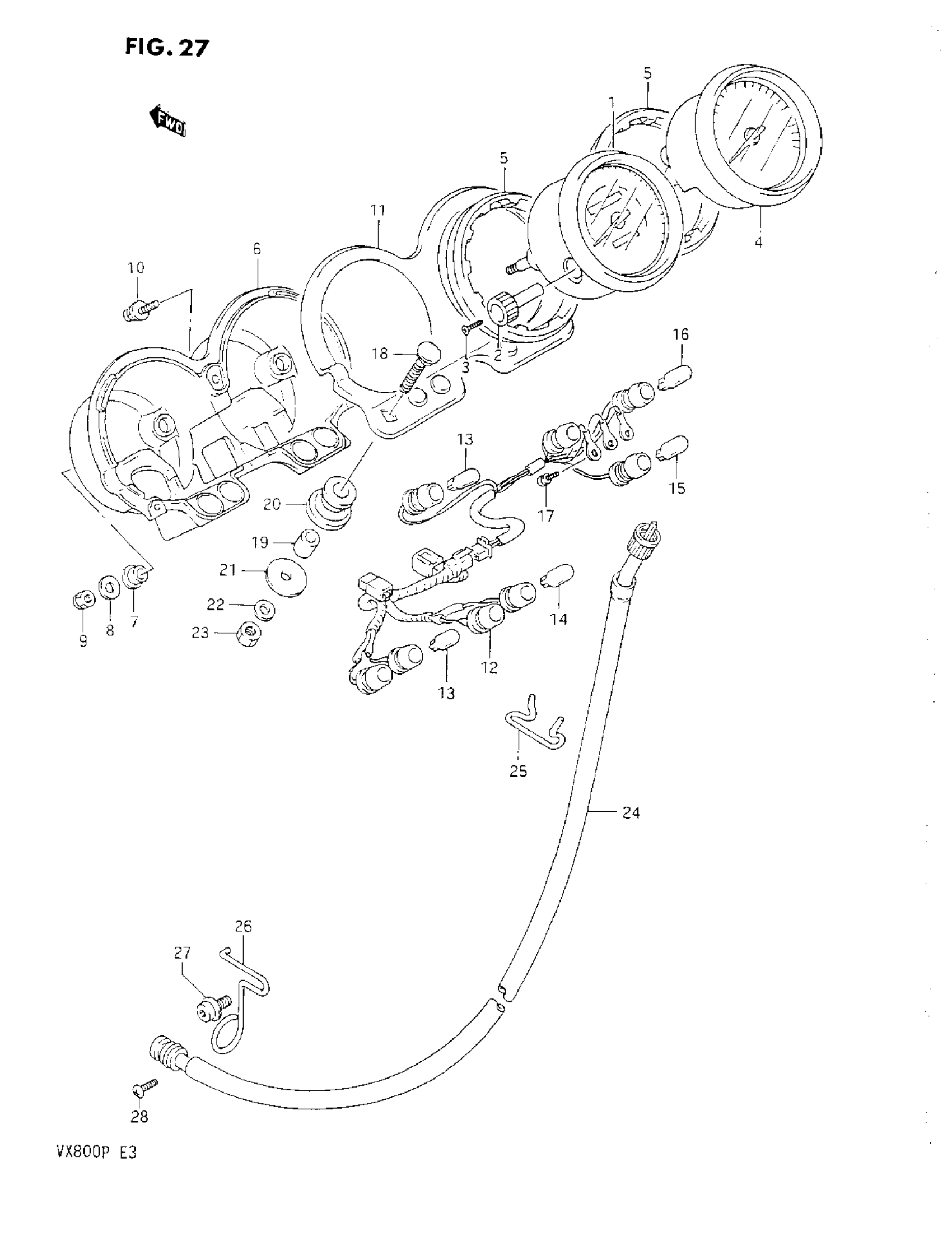 Suzuki VX800 (1993) SPEEDOMETER-TACHOMETER Diagram
