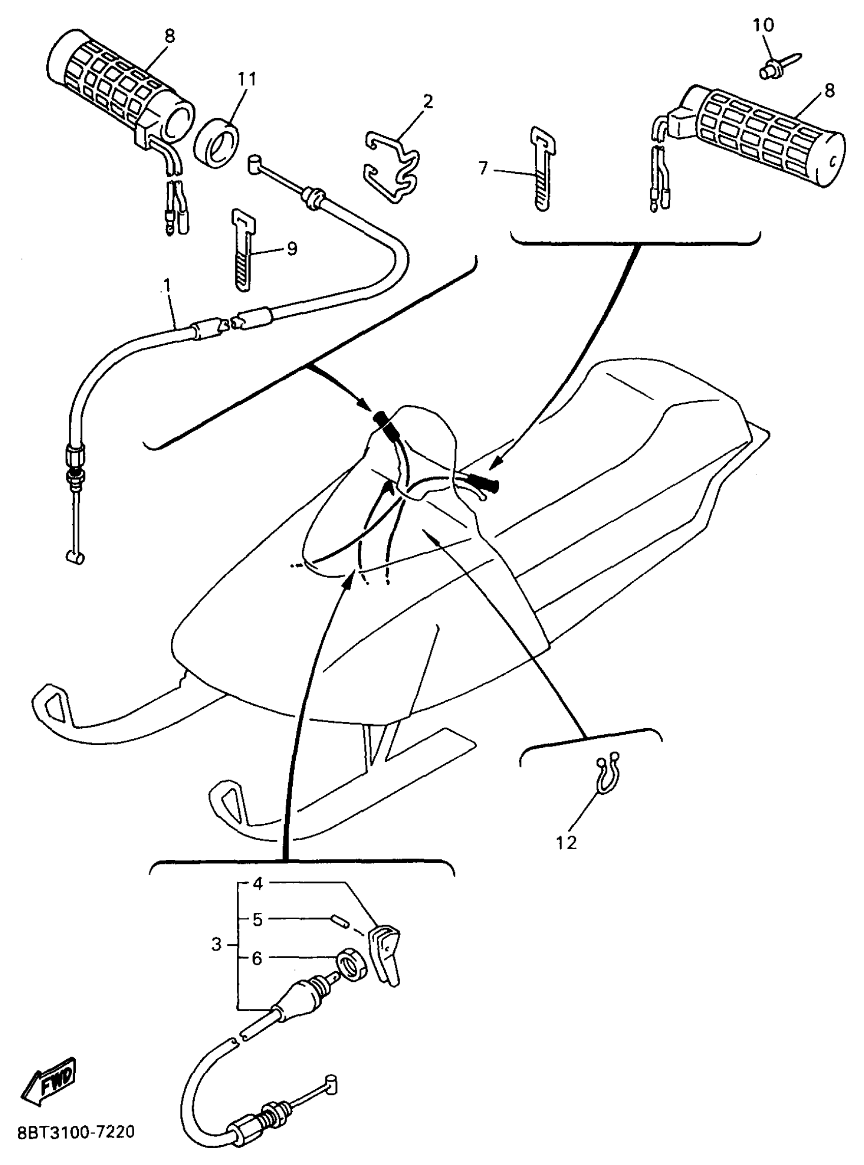 Yamaha VX800A (VMAX-4 800) 8BU3 1997 CONTROL CABLE Diagram