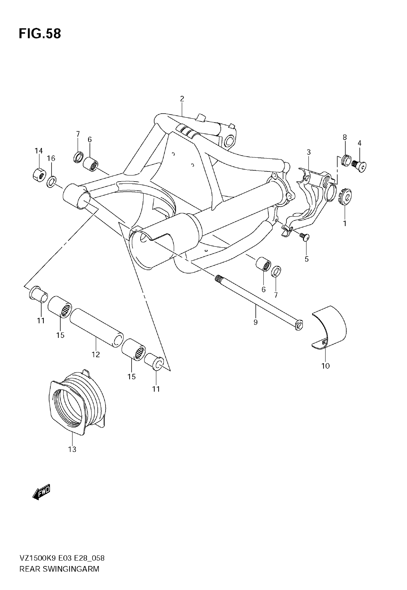 Suzuki VZ1500 (2009) REAR SWINGINGARM Diagram