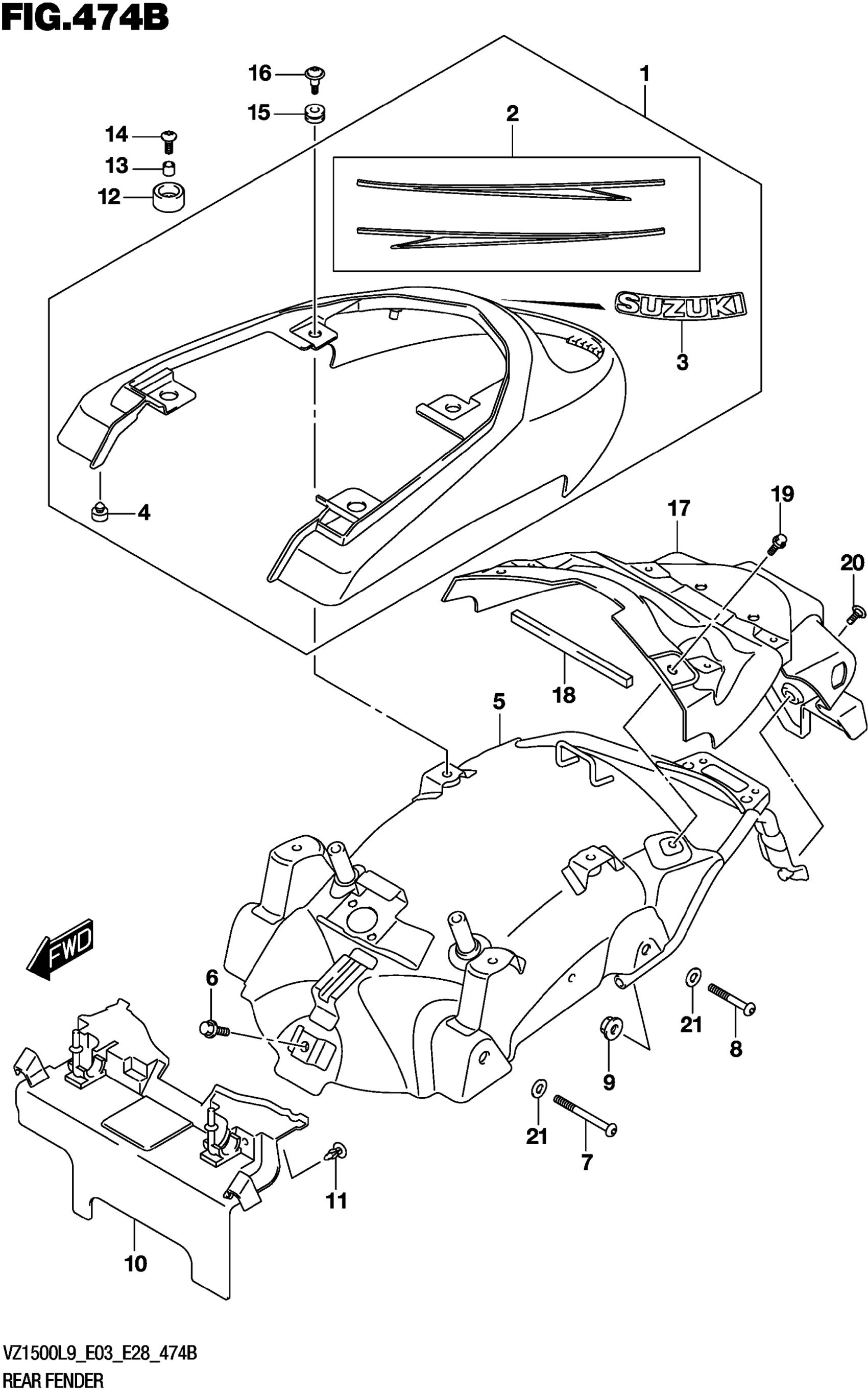 Suzuki VZ1500L9 (2019) REAR FENDER 474B Diagram