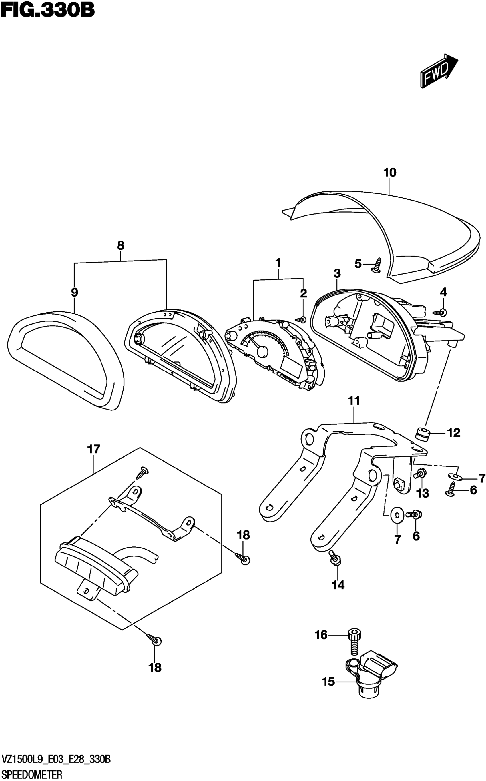Suzuki VZ1500L9 (2019) SPEEDOMETER (E28) Diagram