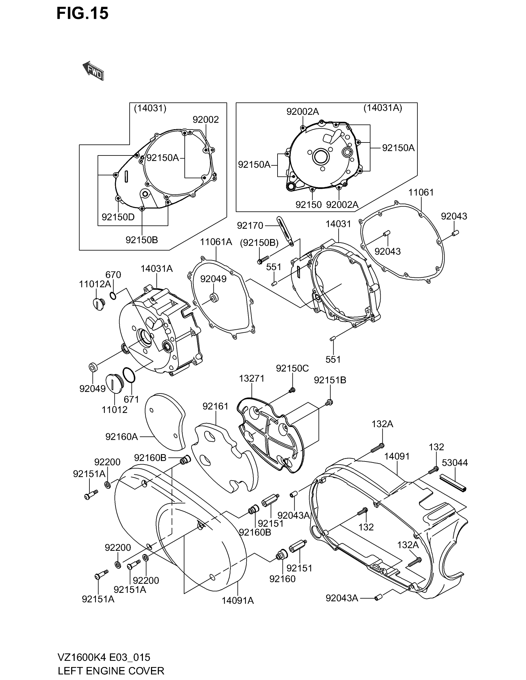 Suzuki VZ1600 E3 (2004) LEFT ENGINE COVER Diagram