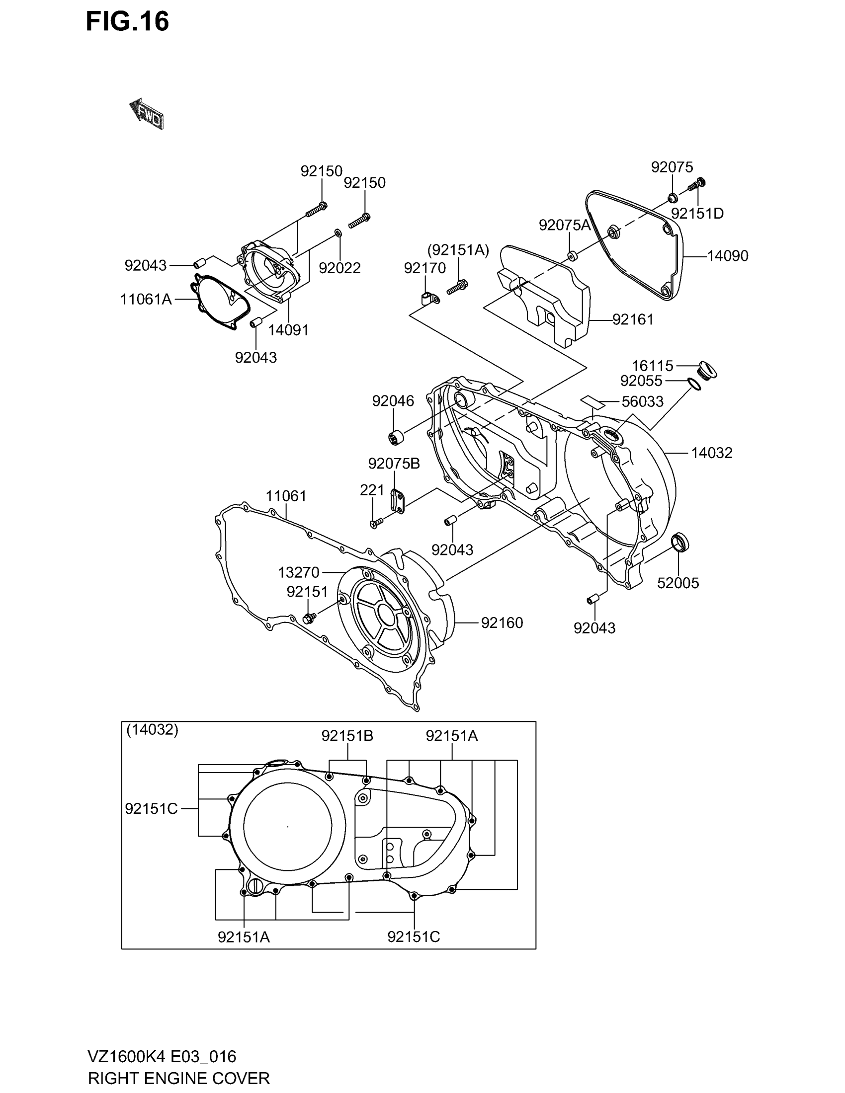 Suzuki VZ1600 E3 (2004) RIGHT ENGINE COVER Diagram