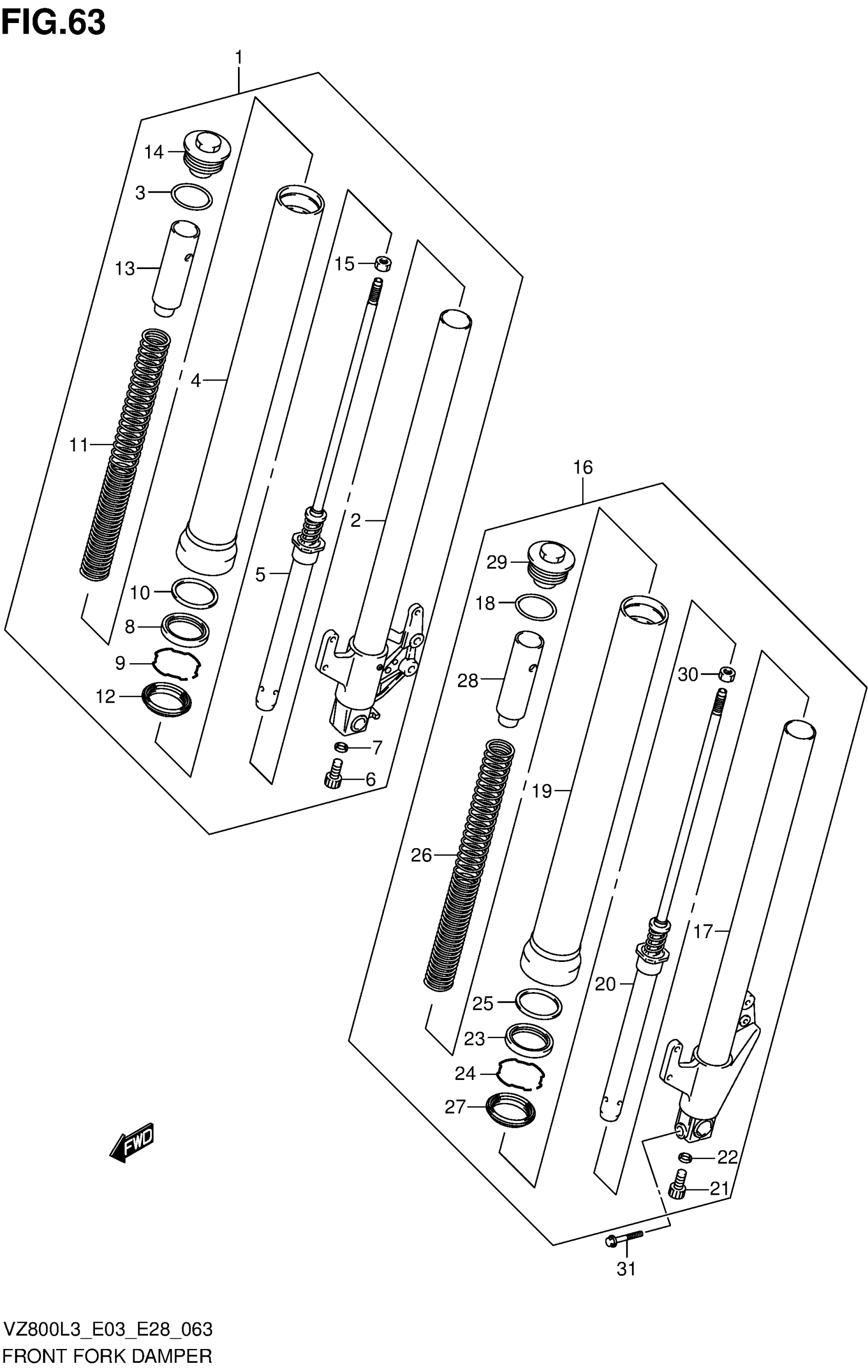 Suzuki VZ800L3 (2013) FRONT FORK DAMPER Diagram