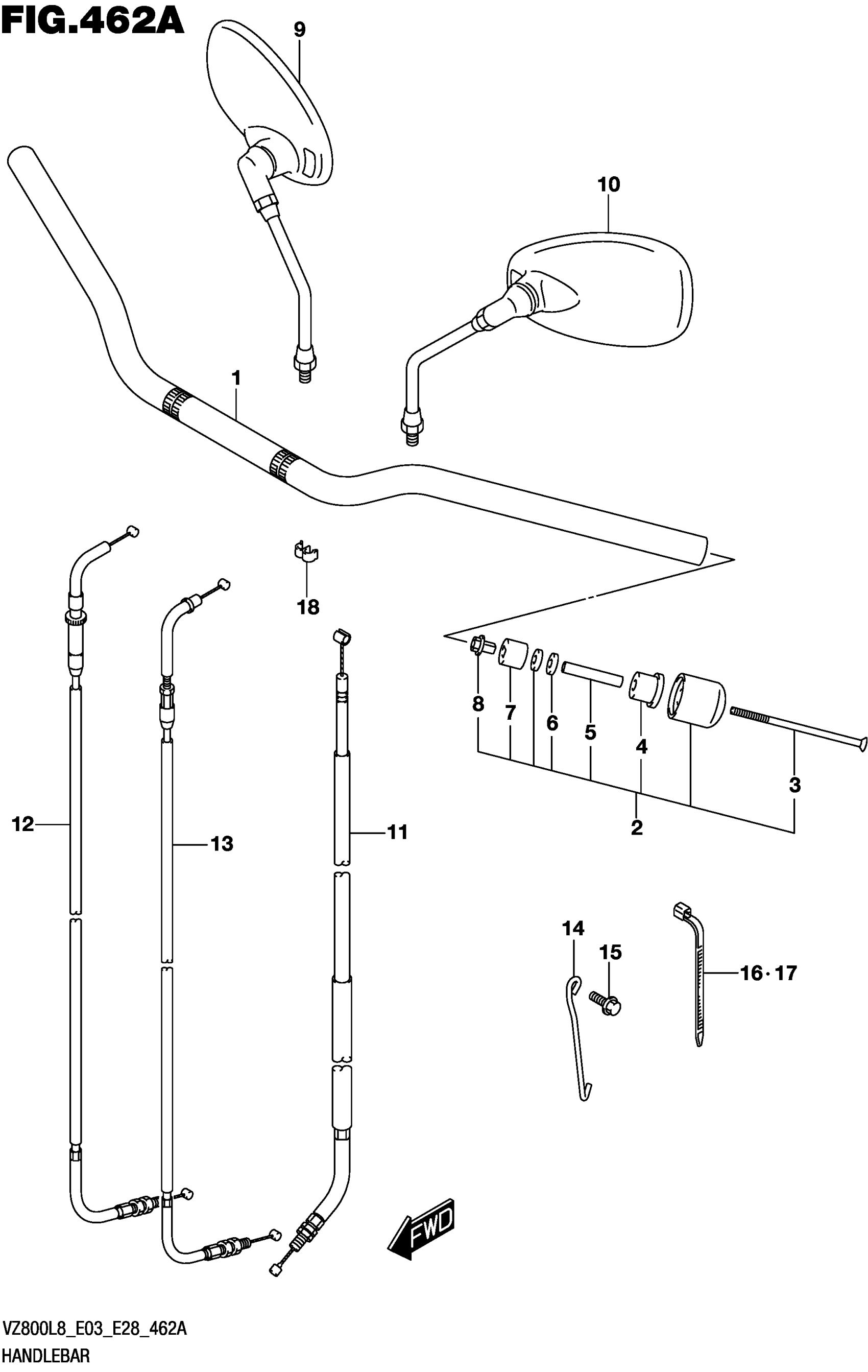 Suzuki VZ800L8 (2018) HANDLEBAR Diagram