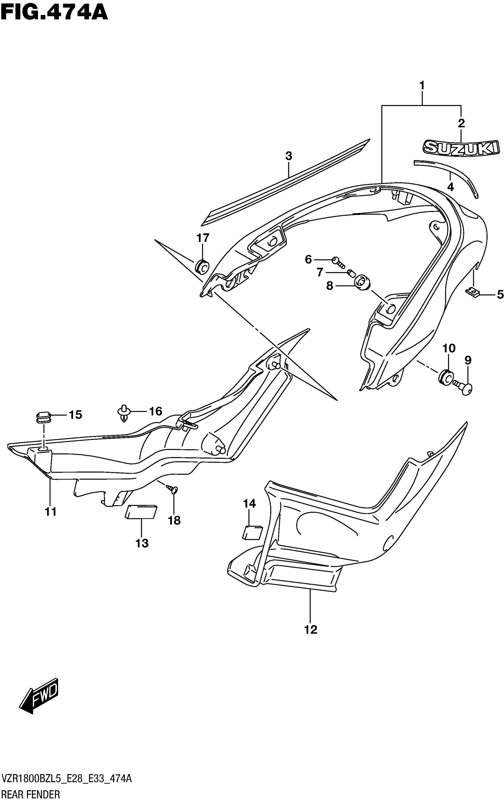 Suzuki VZR1800BZL5 (2015) REAR FENDER (VZR1800BZL5 E28) Diagram