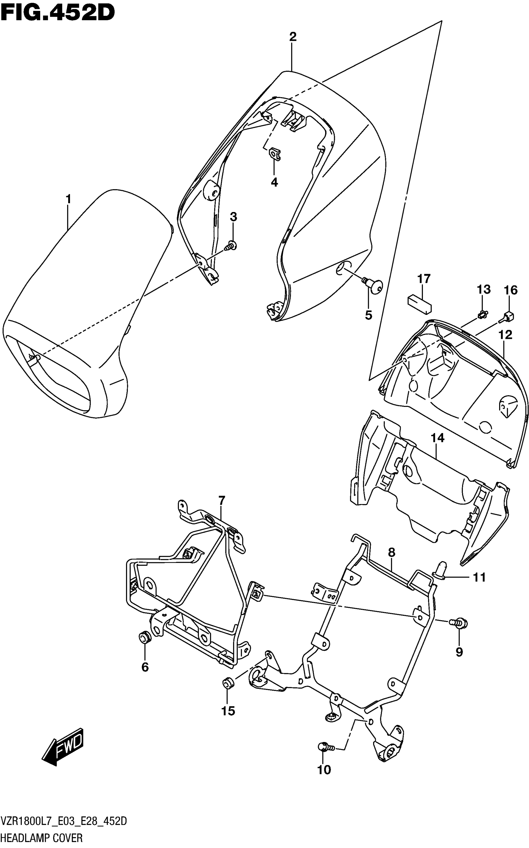 Suzuki VZR1800BZL7 (2017) HEADLAMP COVER (FOR PGZ) (VZR1800BZL7 E28) Diagram