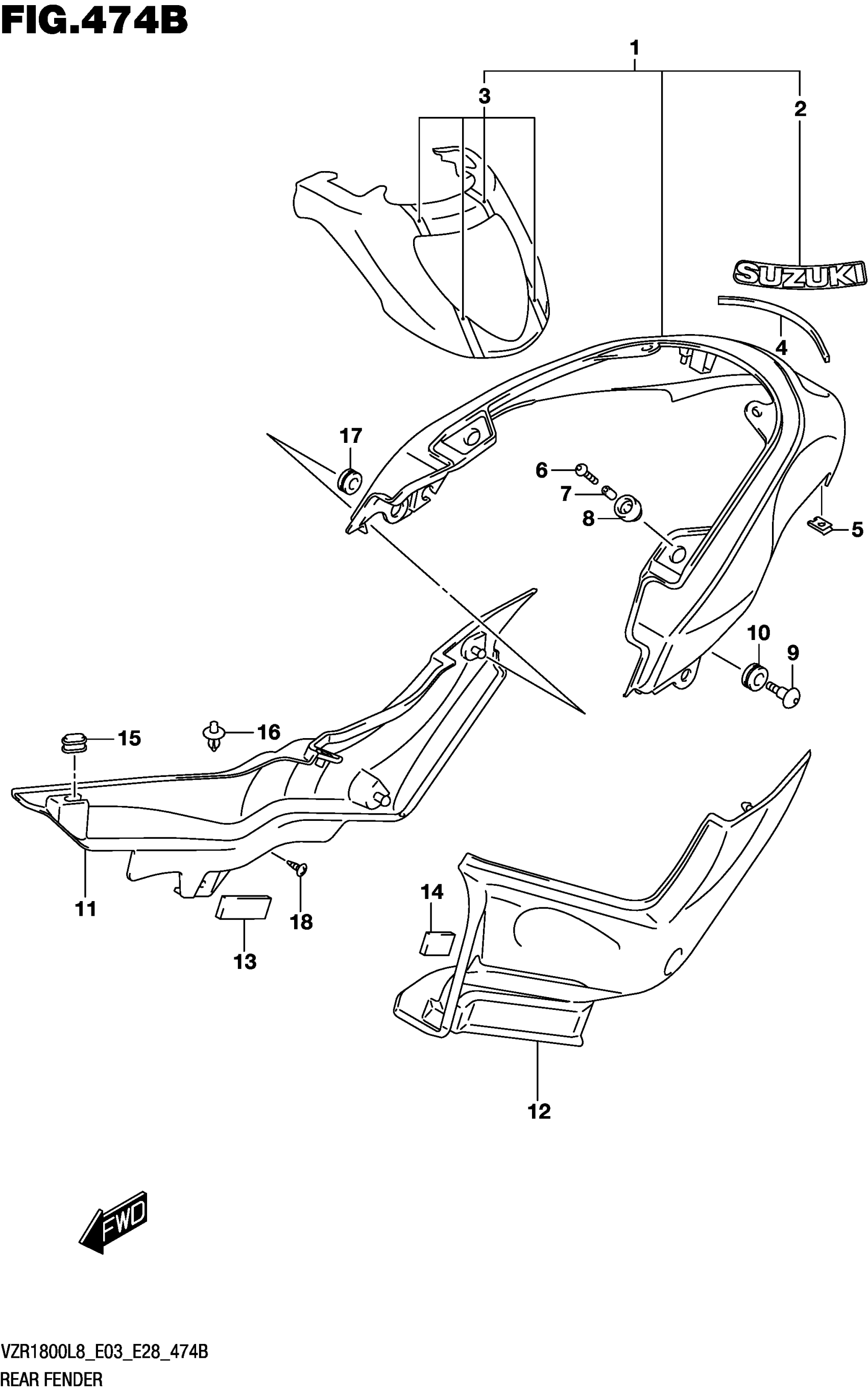 Suzuki VZR1800BZL8 (2018) REAR FENDER (VZR1800BZL8 E03) (JBA) Diagram