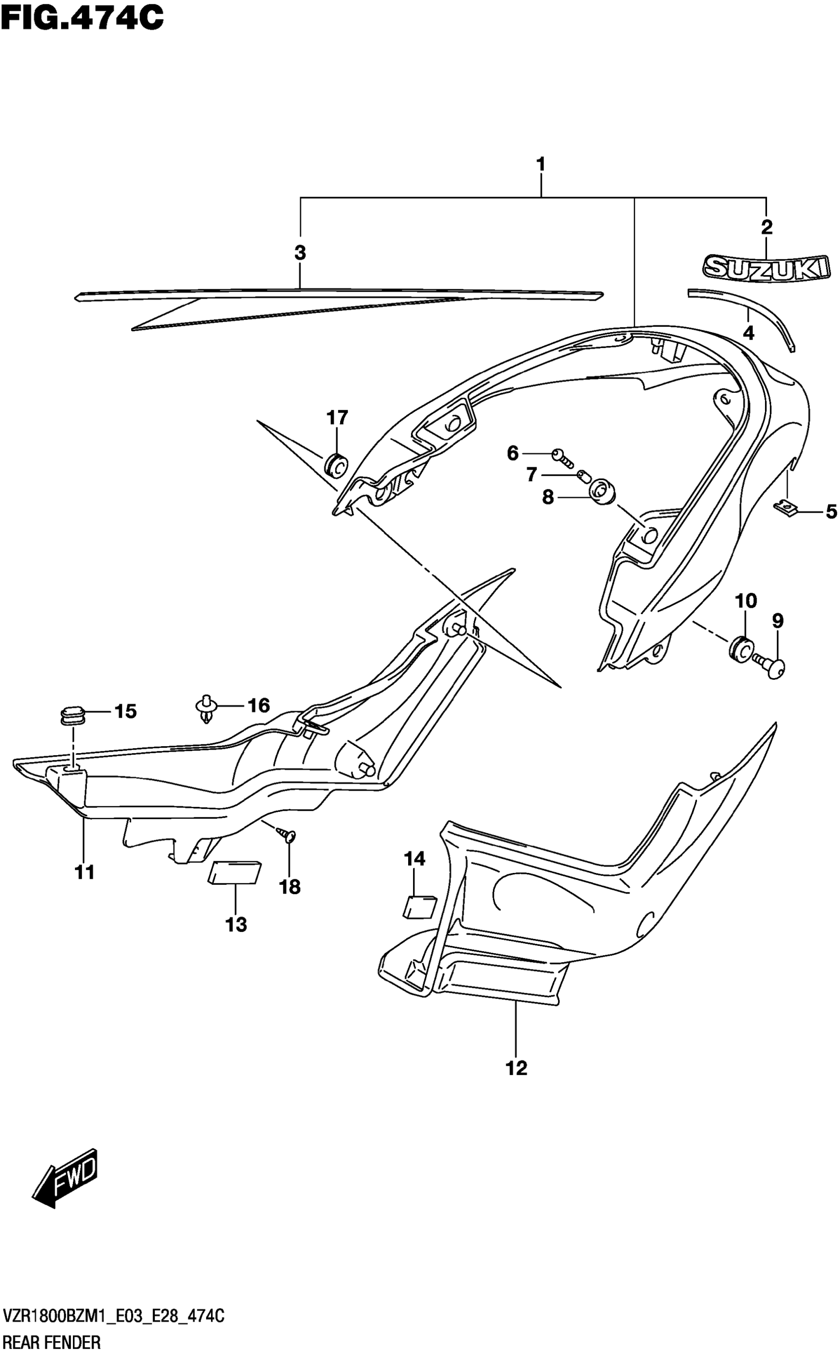 Suzuki VZR1800BZM1 (2021) REAR FENDER (SEE NOTE 1) 474C Diagram