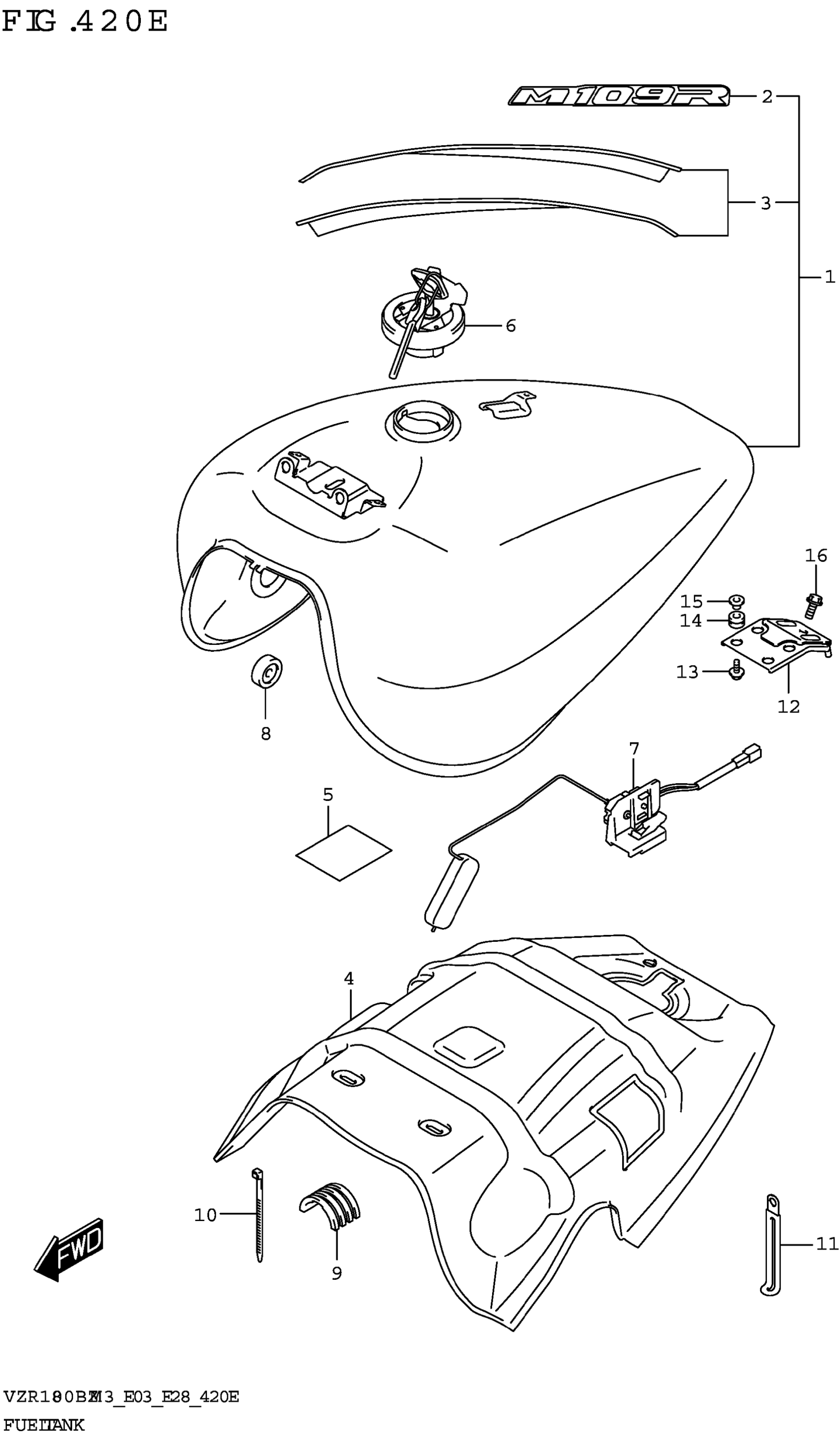 Suzuki VZR1800BZM3 (2023) FUEL TANK (E03,E28)(SEE NOTE 1) 420E Diagram