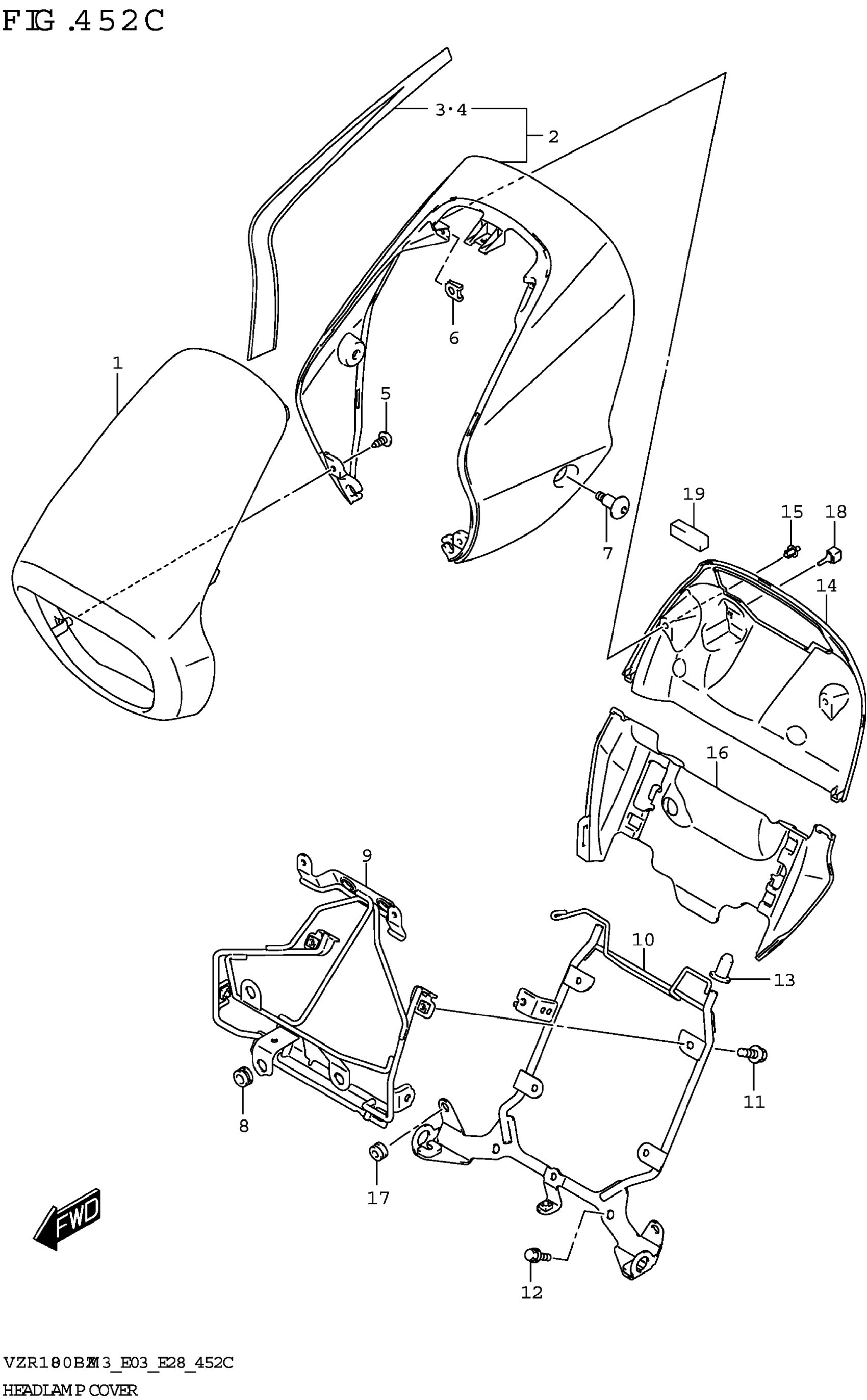 Suzuki VZR1800BZM3 (2023) HEADLAMP COVER (SEE NOTE 1) 452C Diagram
