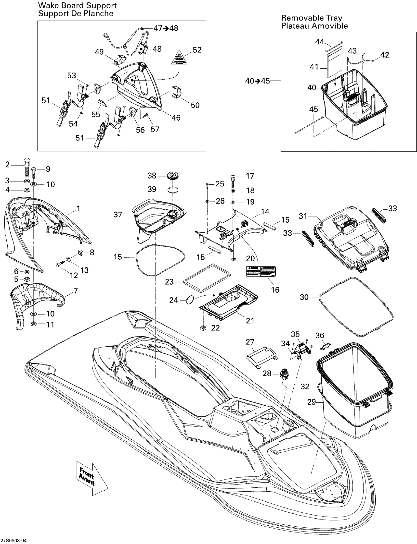 Sea-doo WAKE 215, 2008 09- Body, Front View Diagram