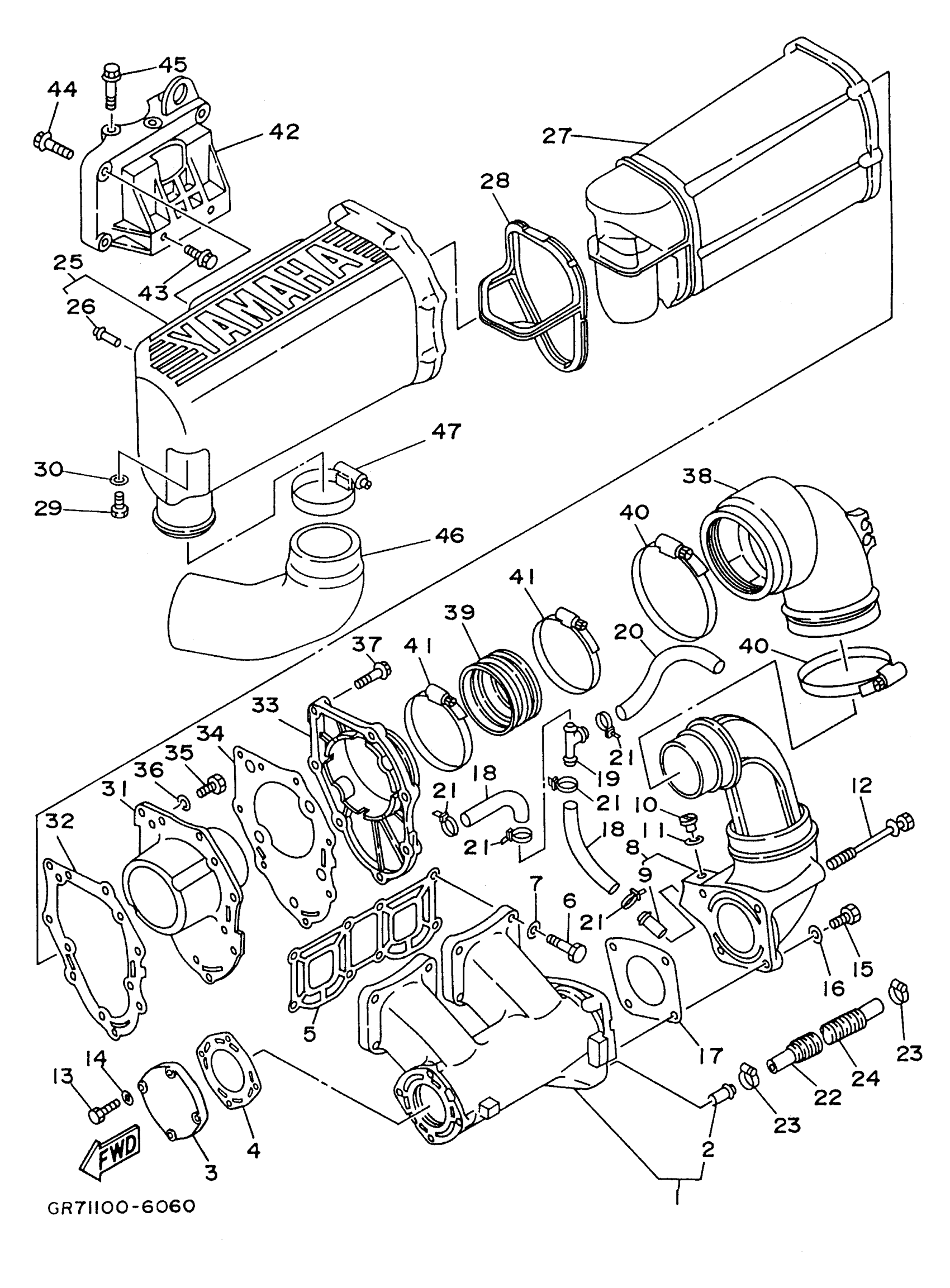 Yamaha WB700AU (WAVE BLASTER) 1996 EXHAUST 1 Diagram