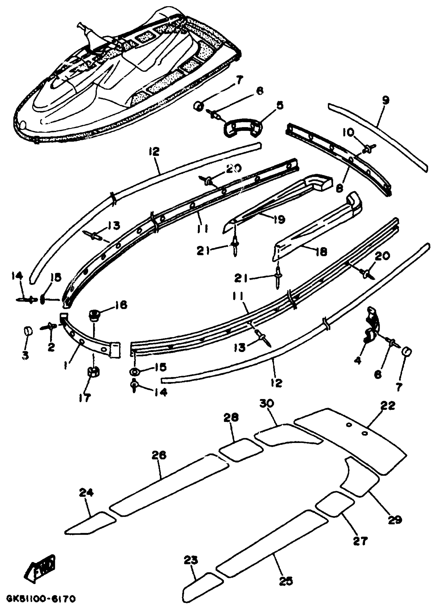 Yamaha WB760V (WAVE BLASTER II) 1997 GUNWALE MAT Diagram