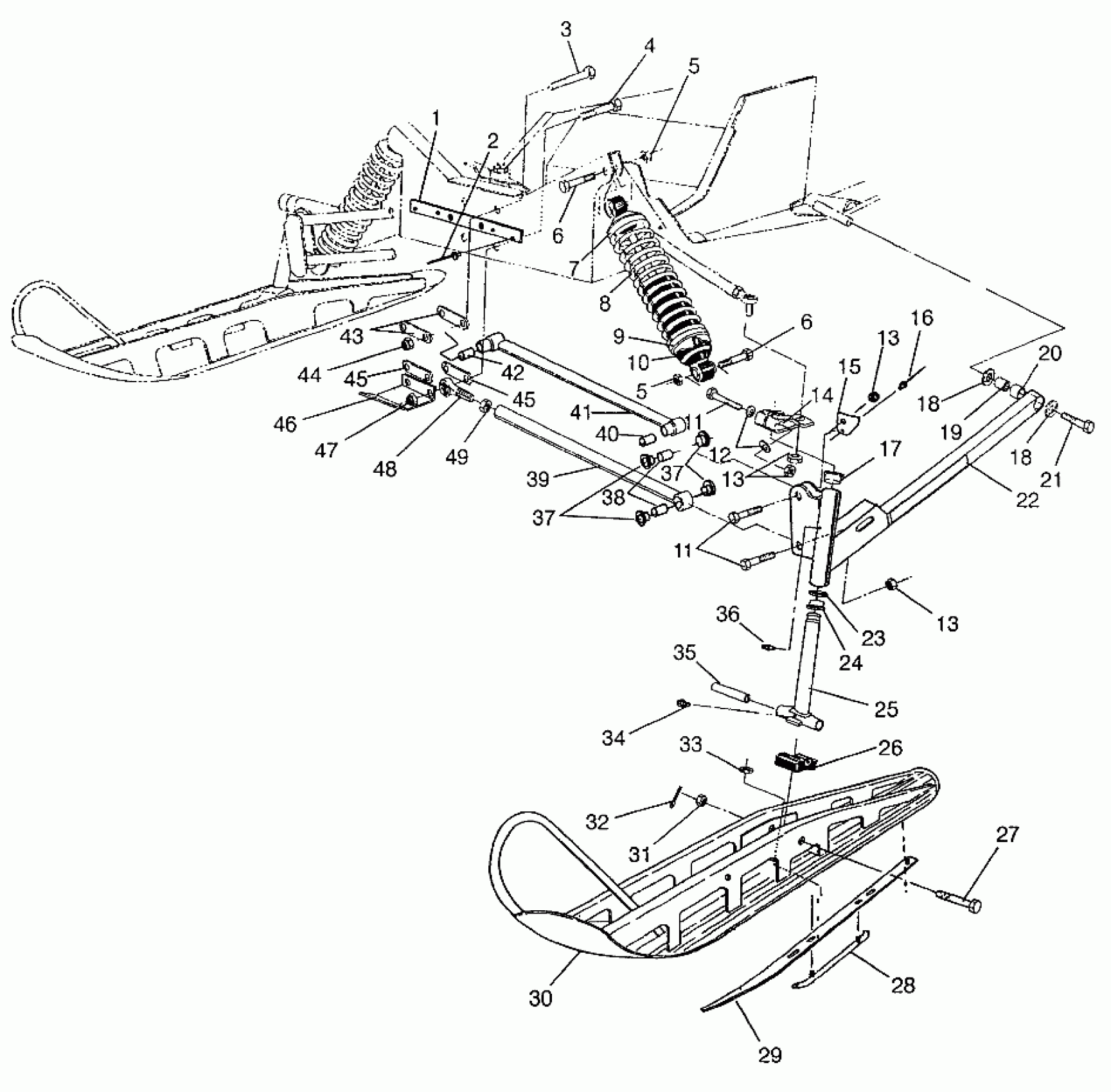 FRONT SUSPENSION and SKI WIDETRAK LX 0972065 and EUROPEAN WIDETRAK LX E972 (4938223822B001)